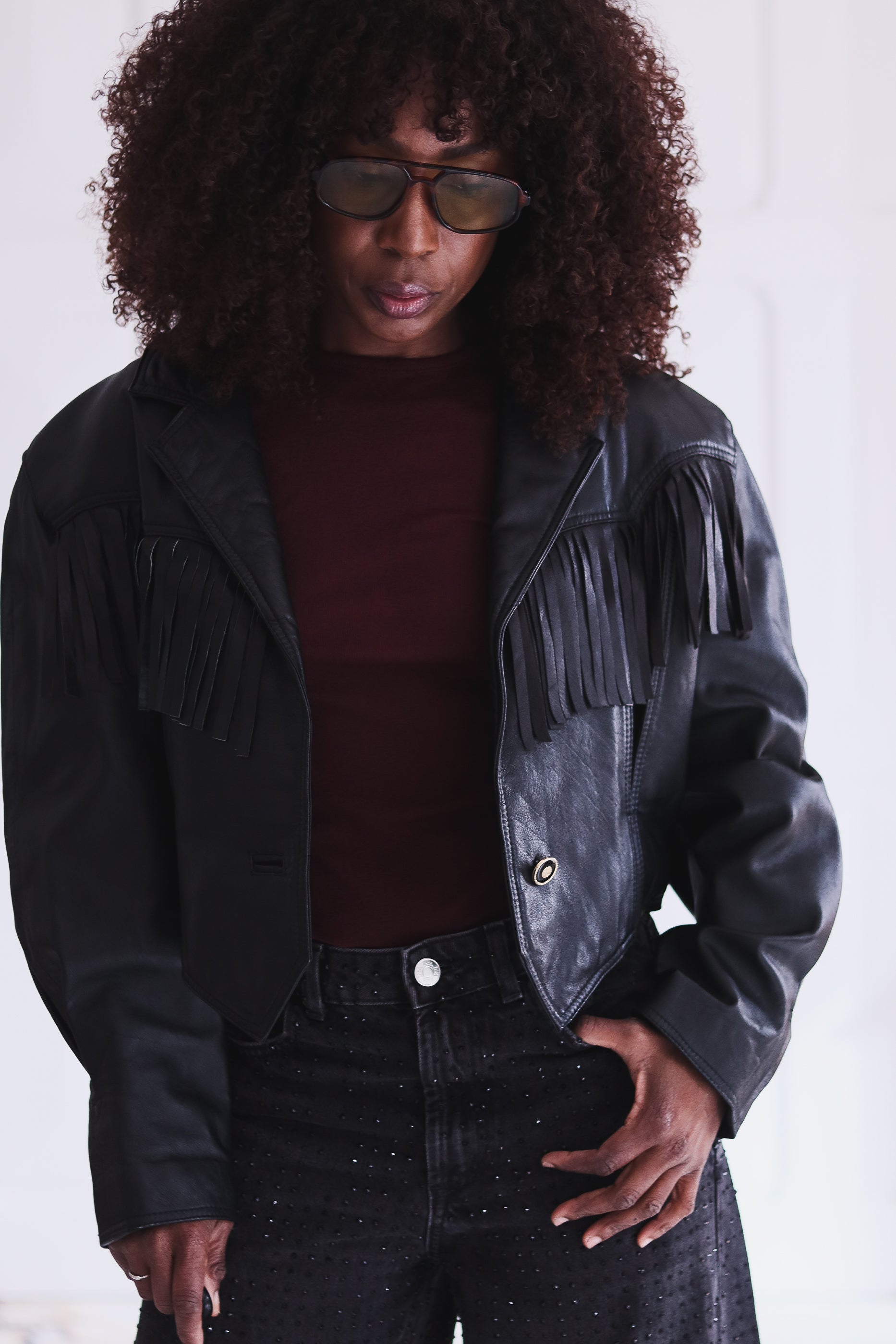Blouson court à franges made in italy