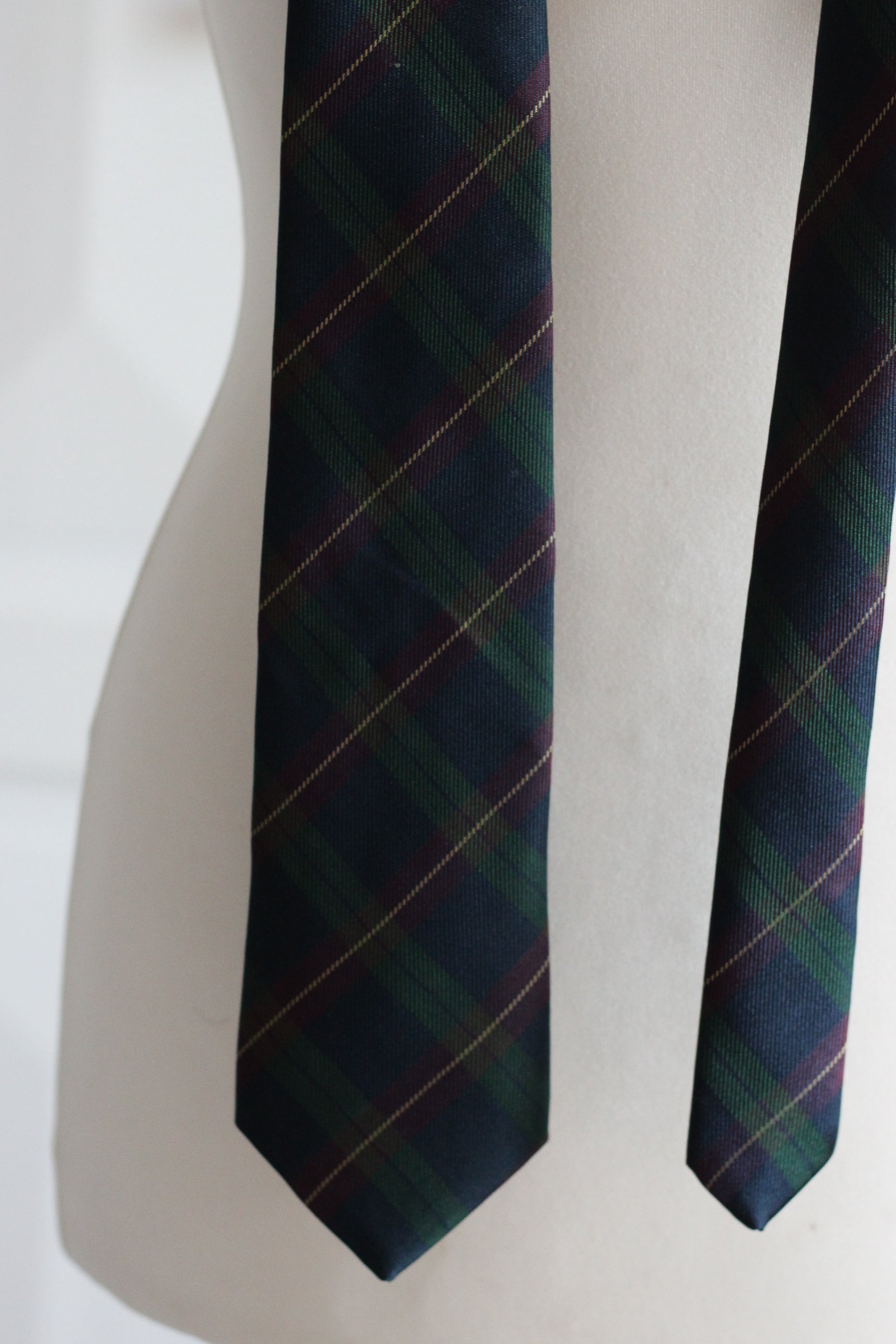 Cravate vintage à carreaux tartan Carven Paris Cravate en soie. Un classique chic, esprit preppy et intemporel, facile à porter avec un blazer ou une chemise blanche.