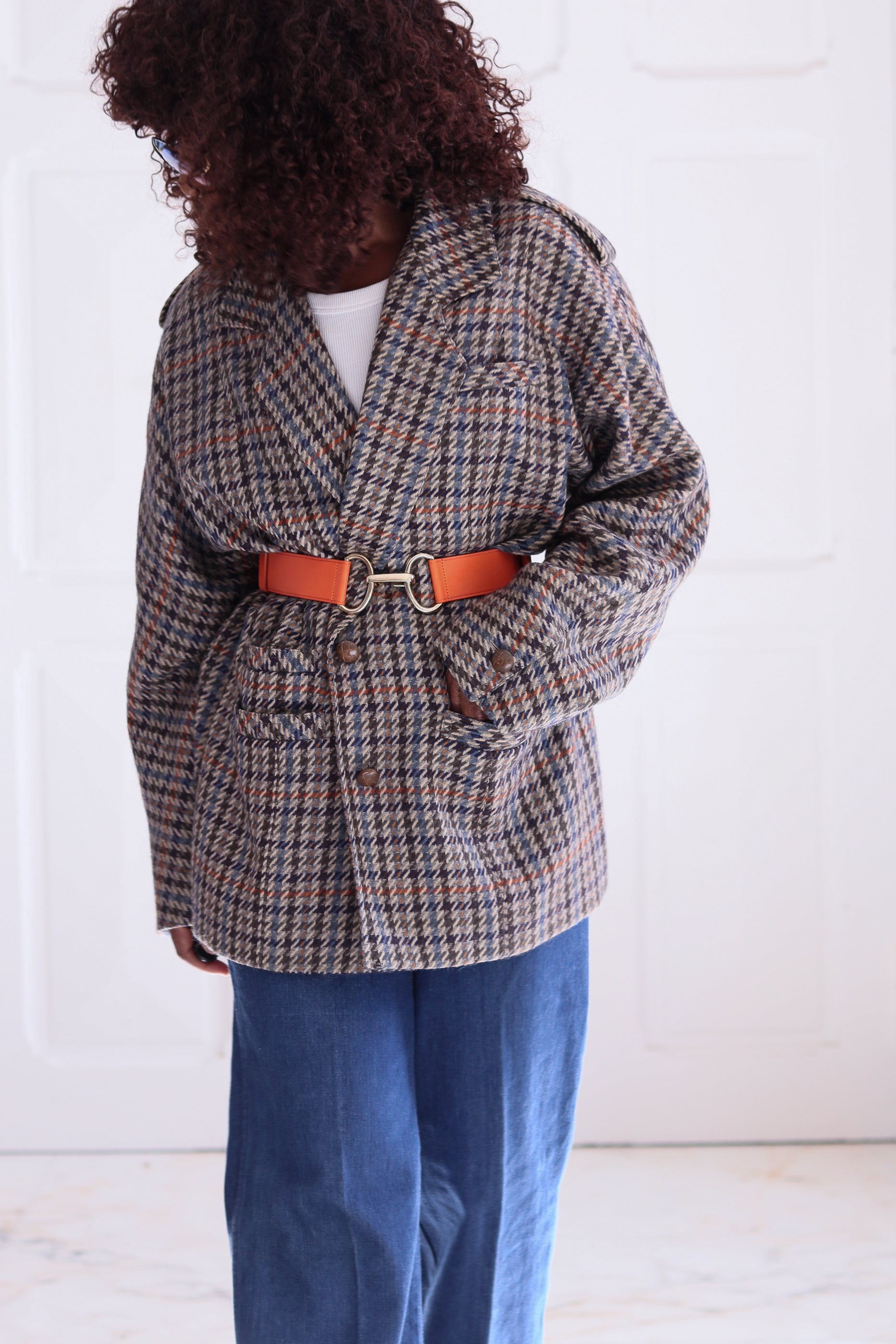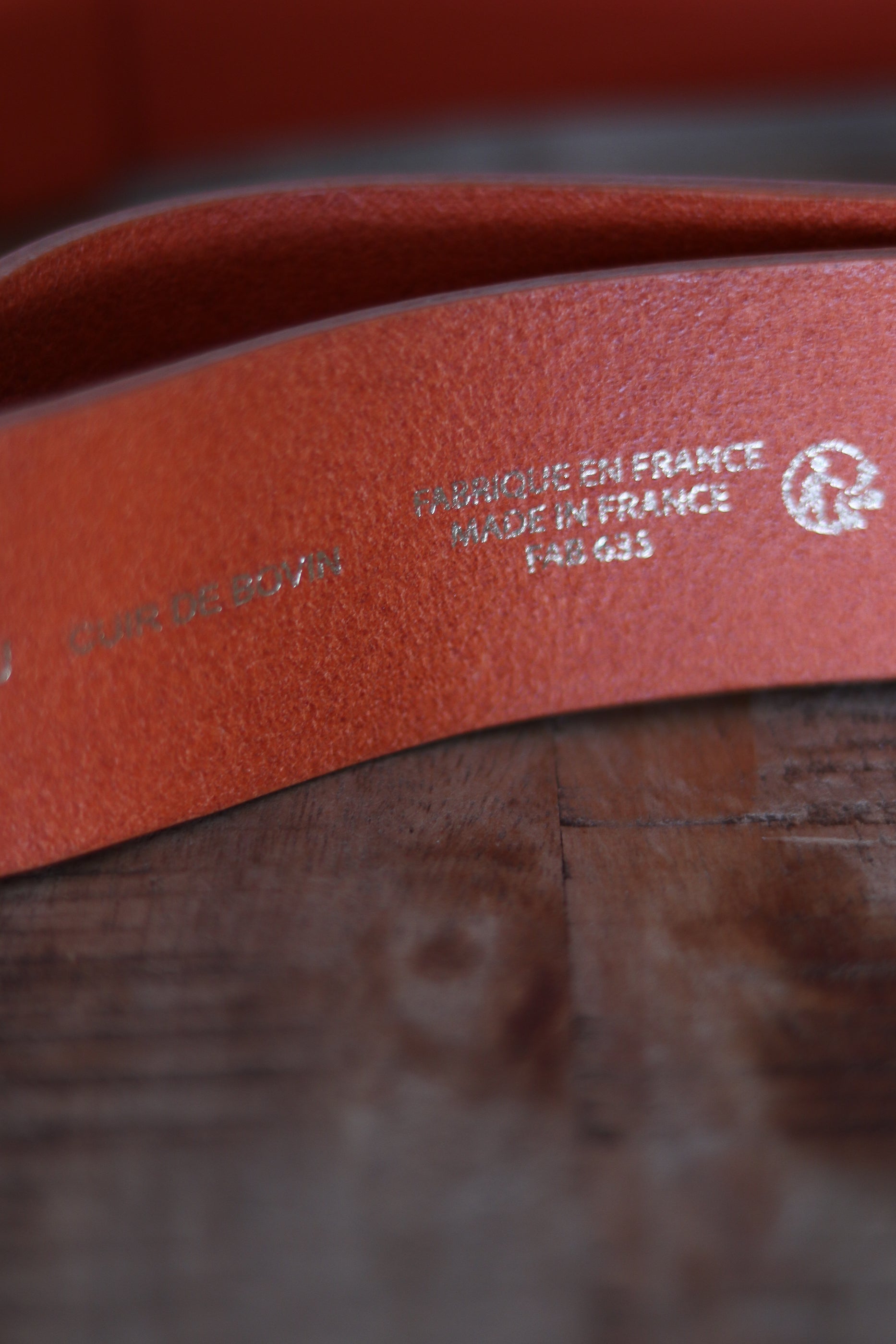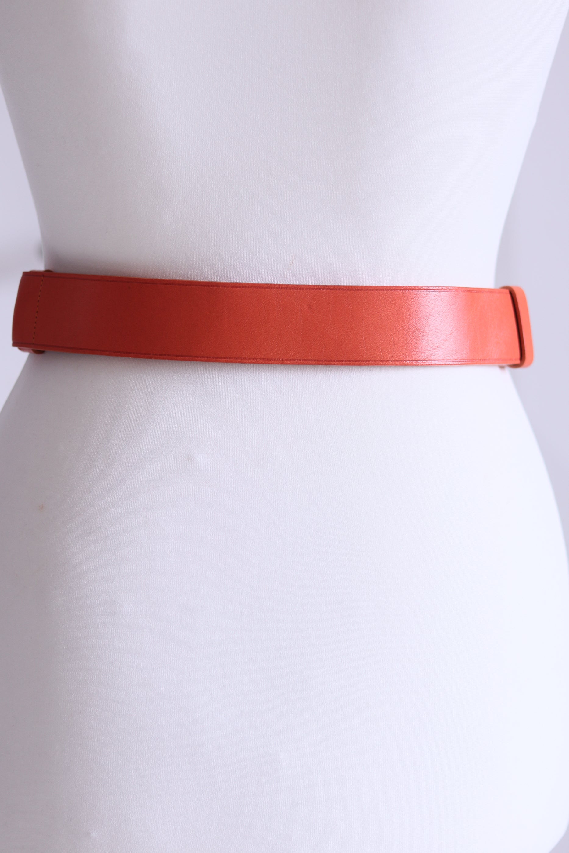 Ceinture vintage des années 1990, création Herbert et de fabrication française. Ceinture en cuir orangé. Elle est coulissante et s'adaptera à vous
