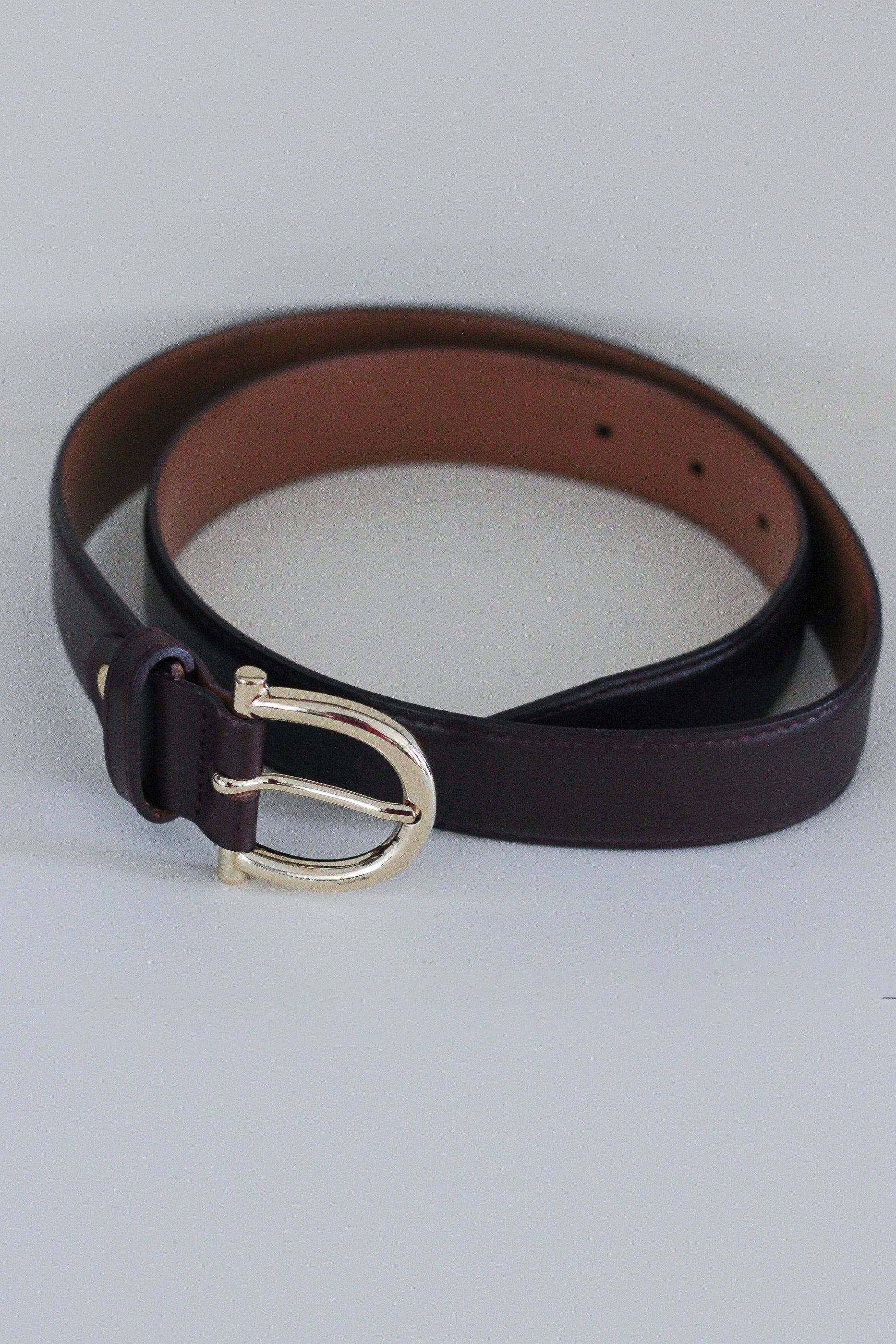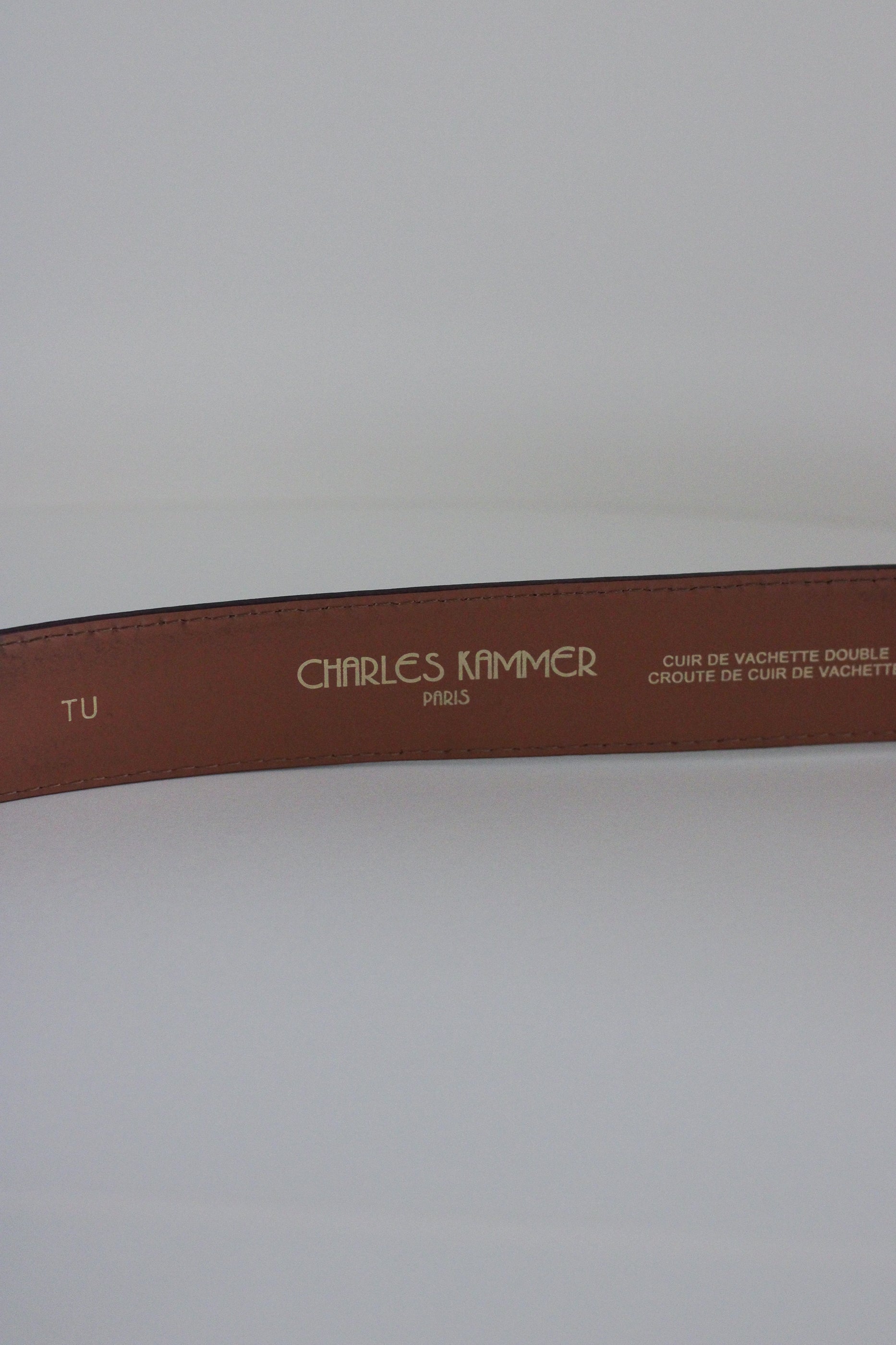 Cuir de vachette de belle qualité. Ceinture datant des années fin 1980 création Charles Kammer et de fabrication française. Composé de 5 trous