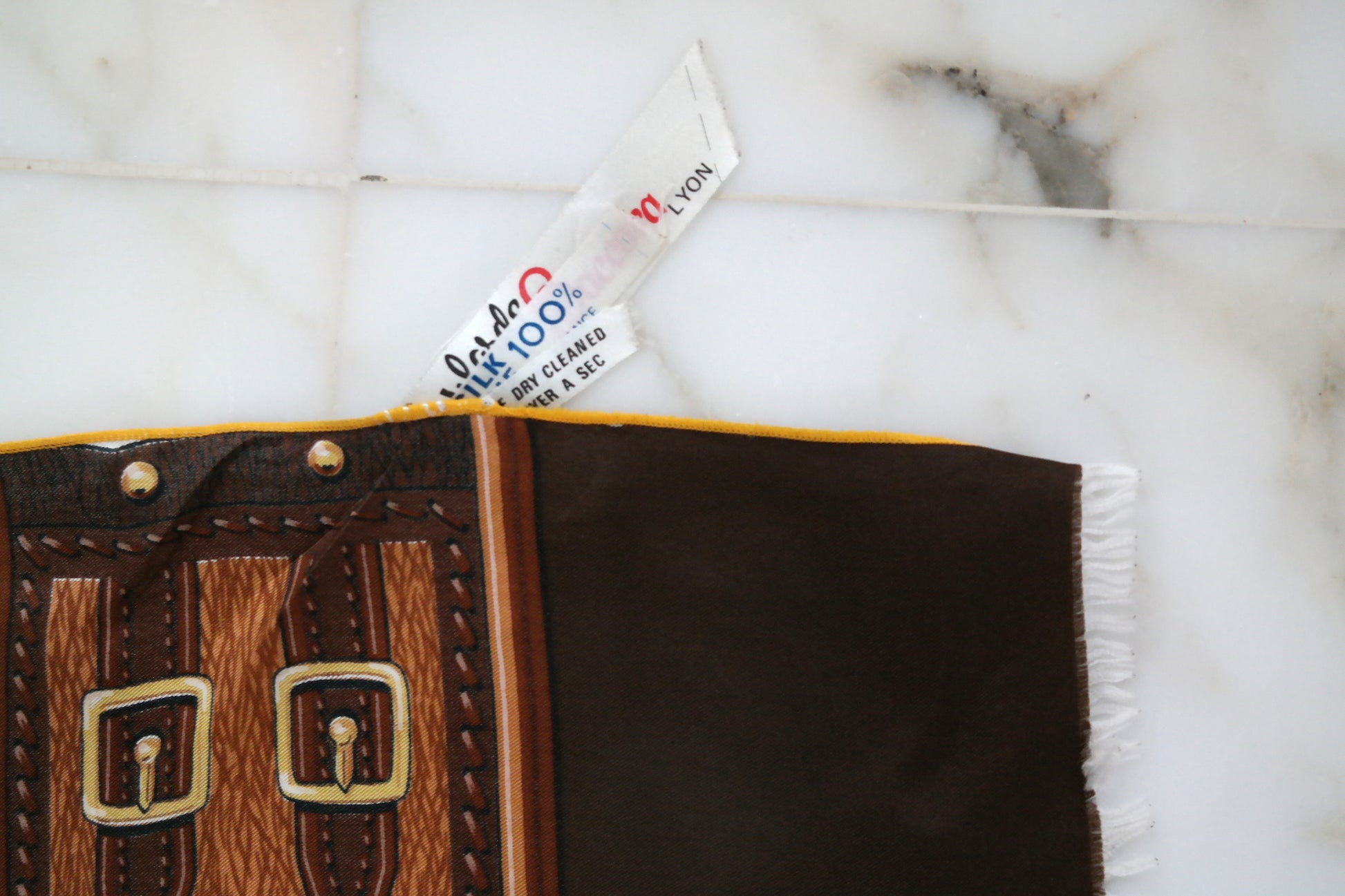 Le savoir-faire français toujours de tendance avec cette écharpe en soie de la marque Baccara qui n'existe plus mais qui produisait des accessoires fait-main dans la ville de Lyon