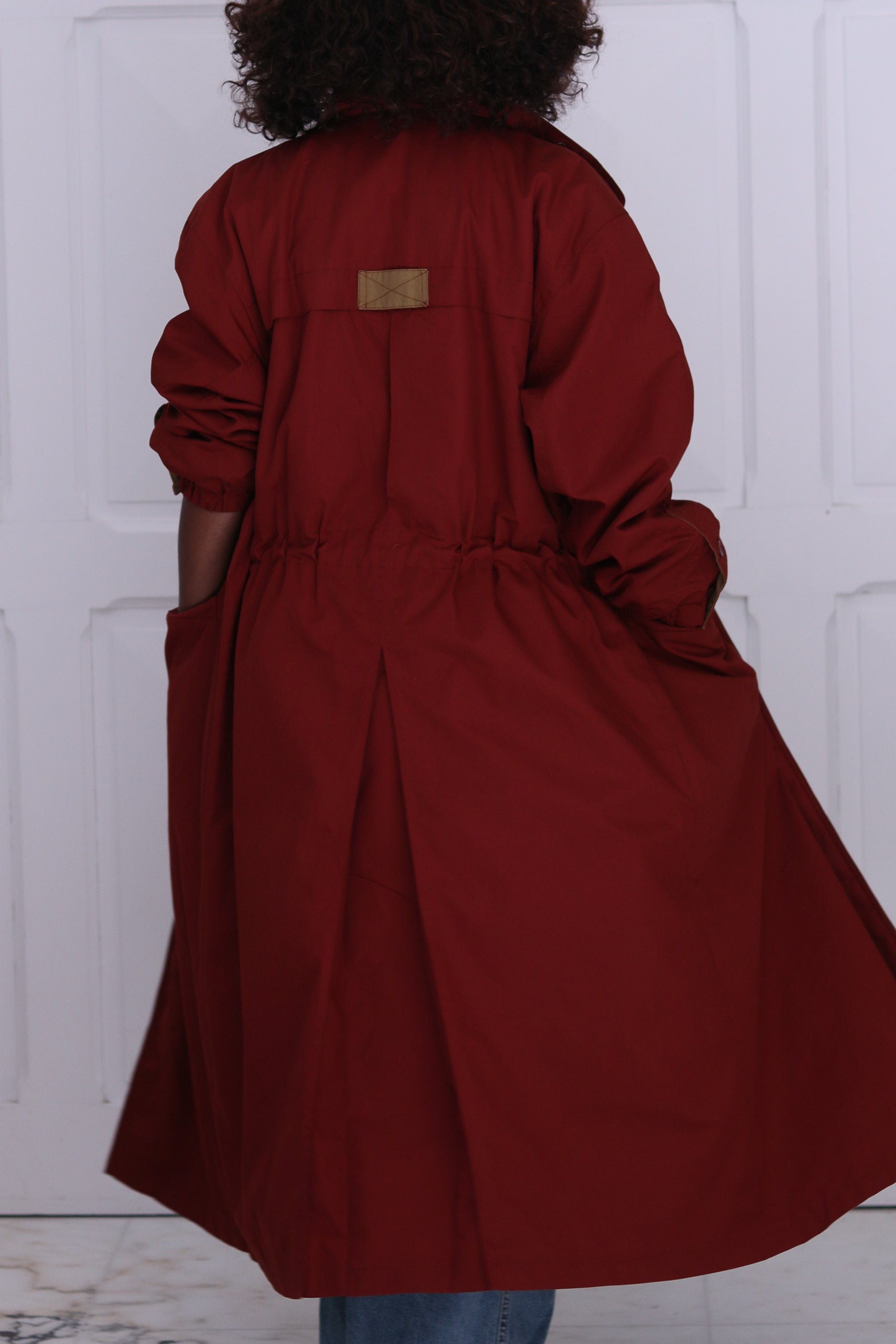 Trench long confort, chaleur et style, belle pièce vintage des années fin 1980, signé Ethnic Dream. Pièce originale avec intérieur matelassé bicolore rouille et beige, qui lui donne un esprit outdoor chic et fonctionnel. Coupe ample avec boutonnage double, taille ajustable grâce à un cordon de serrage