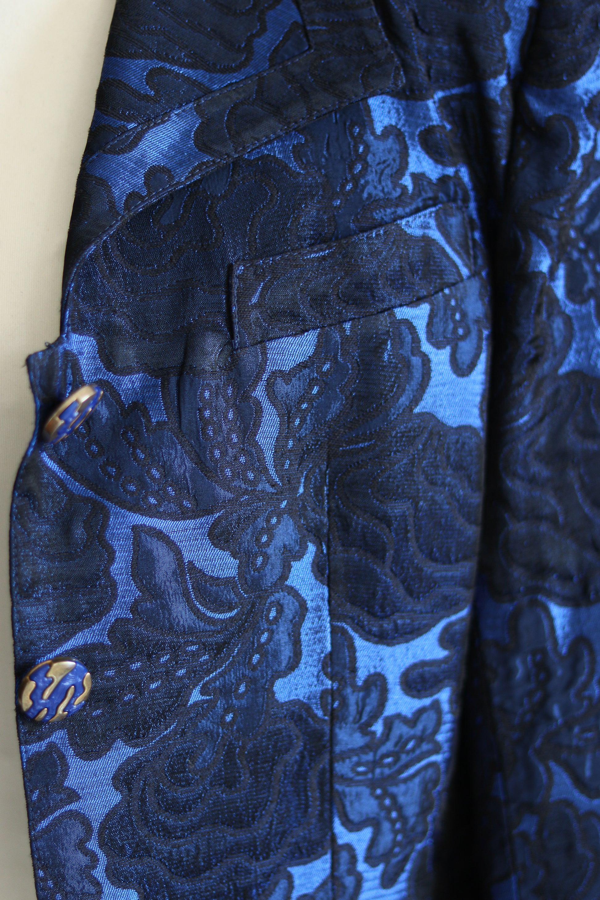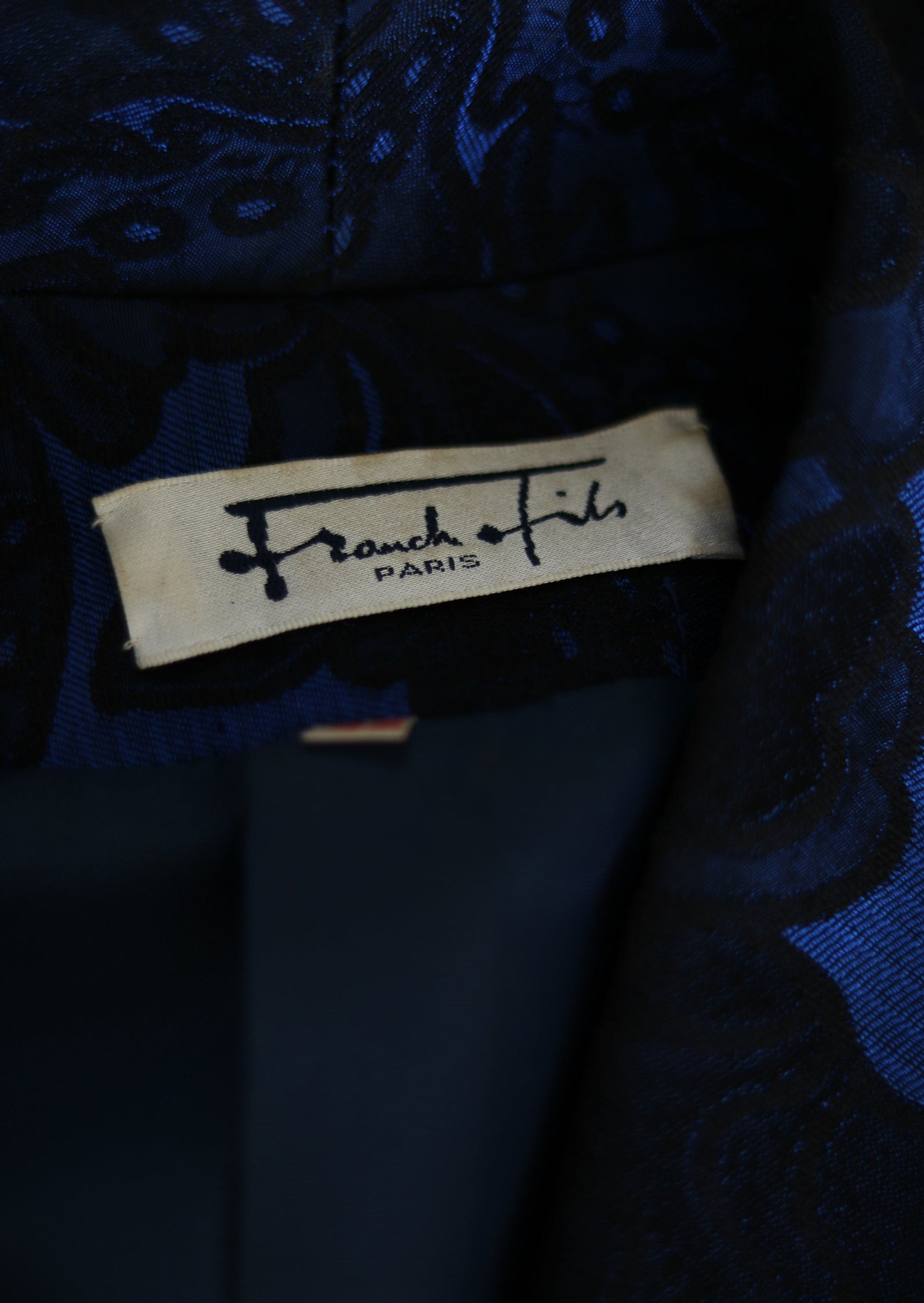 Transportez-vous dans les années 1980 avec cet ensemble confectionné dans un somptueux jacquard bleu électrique, signé Franck & fils et fabriqué en France. La jupe taille haute et la coupe droite ajoutent une touche d'élégance intemporelle.