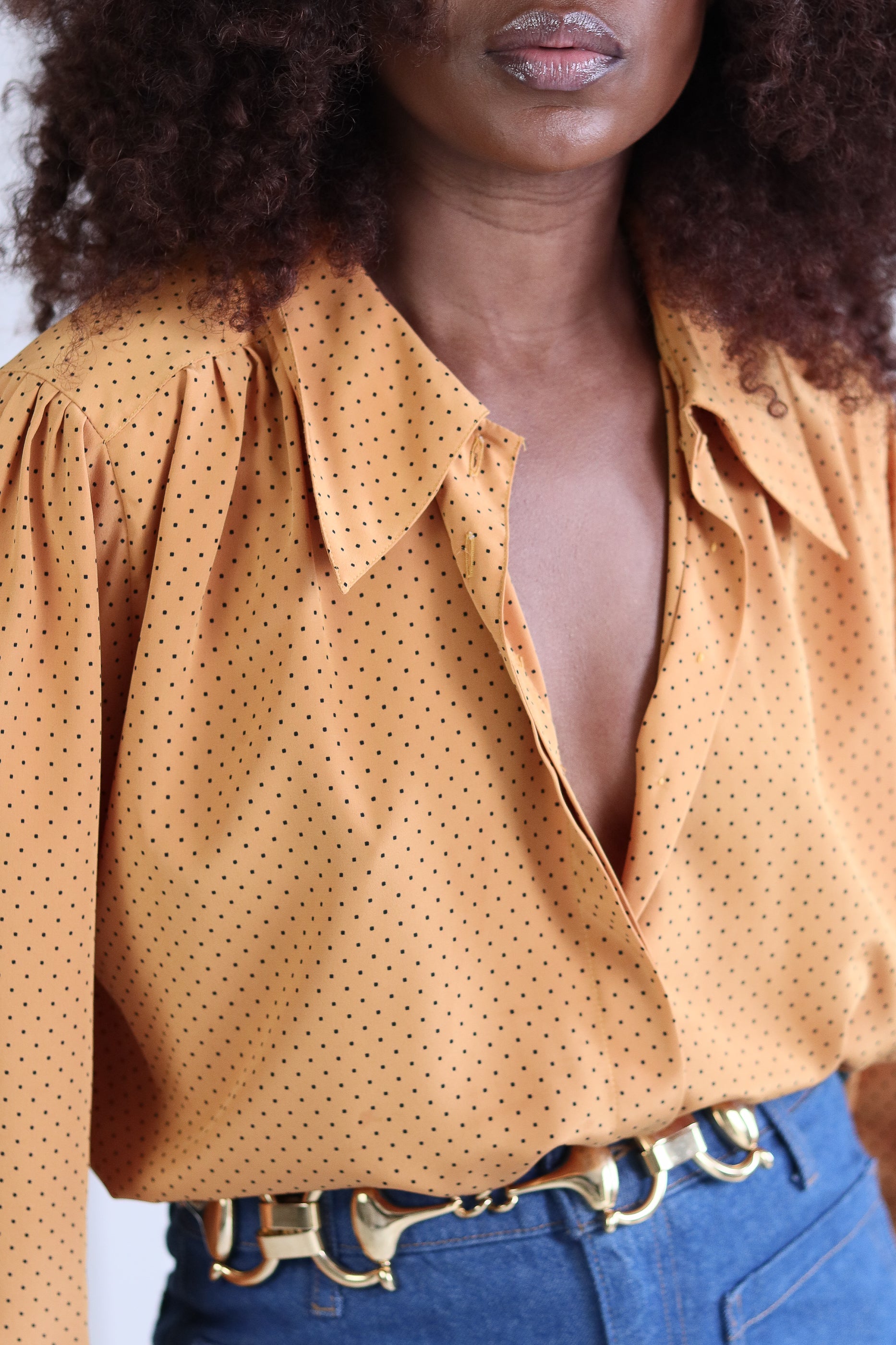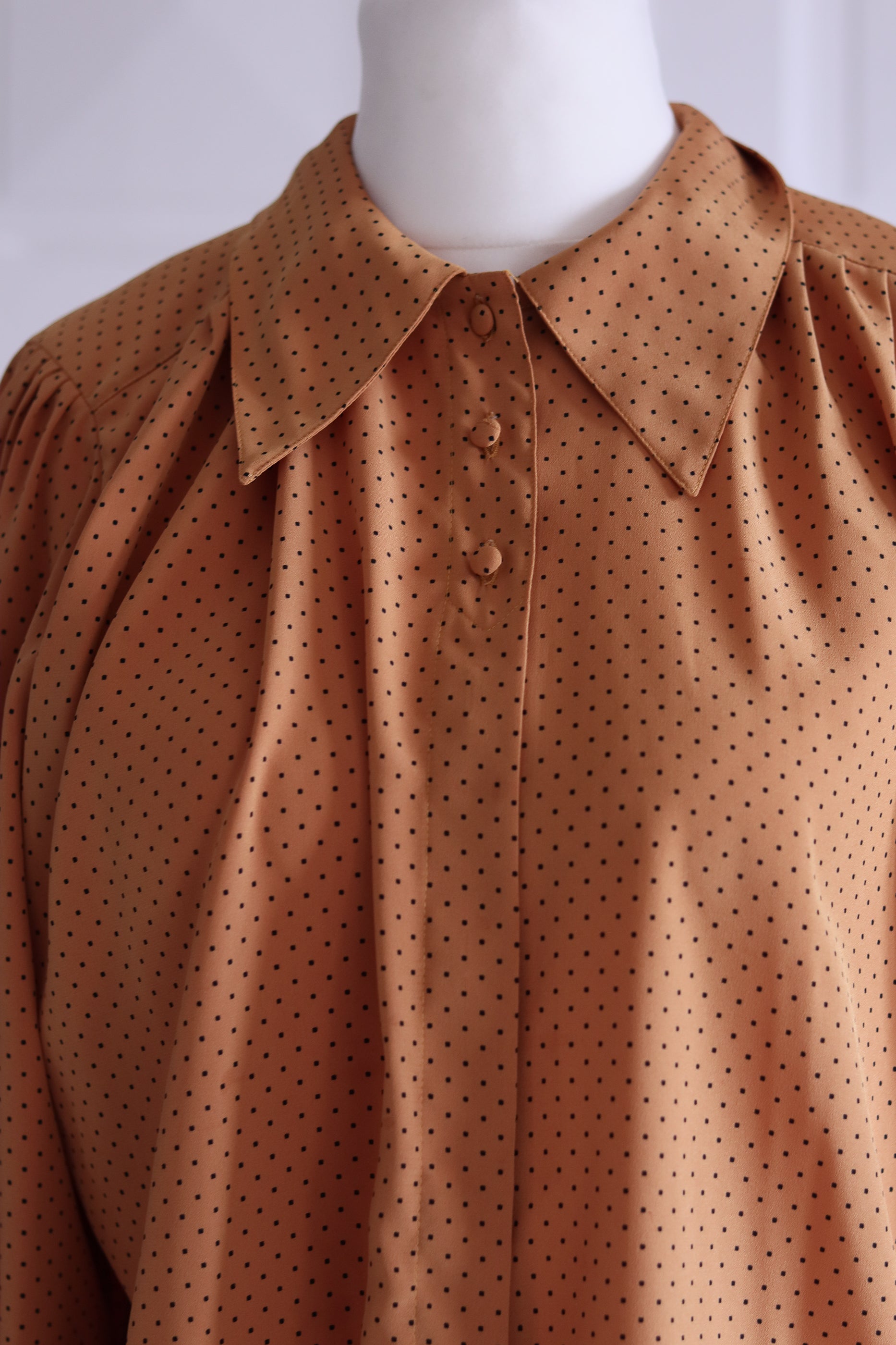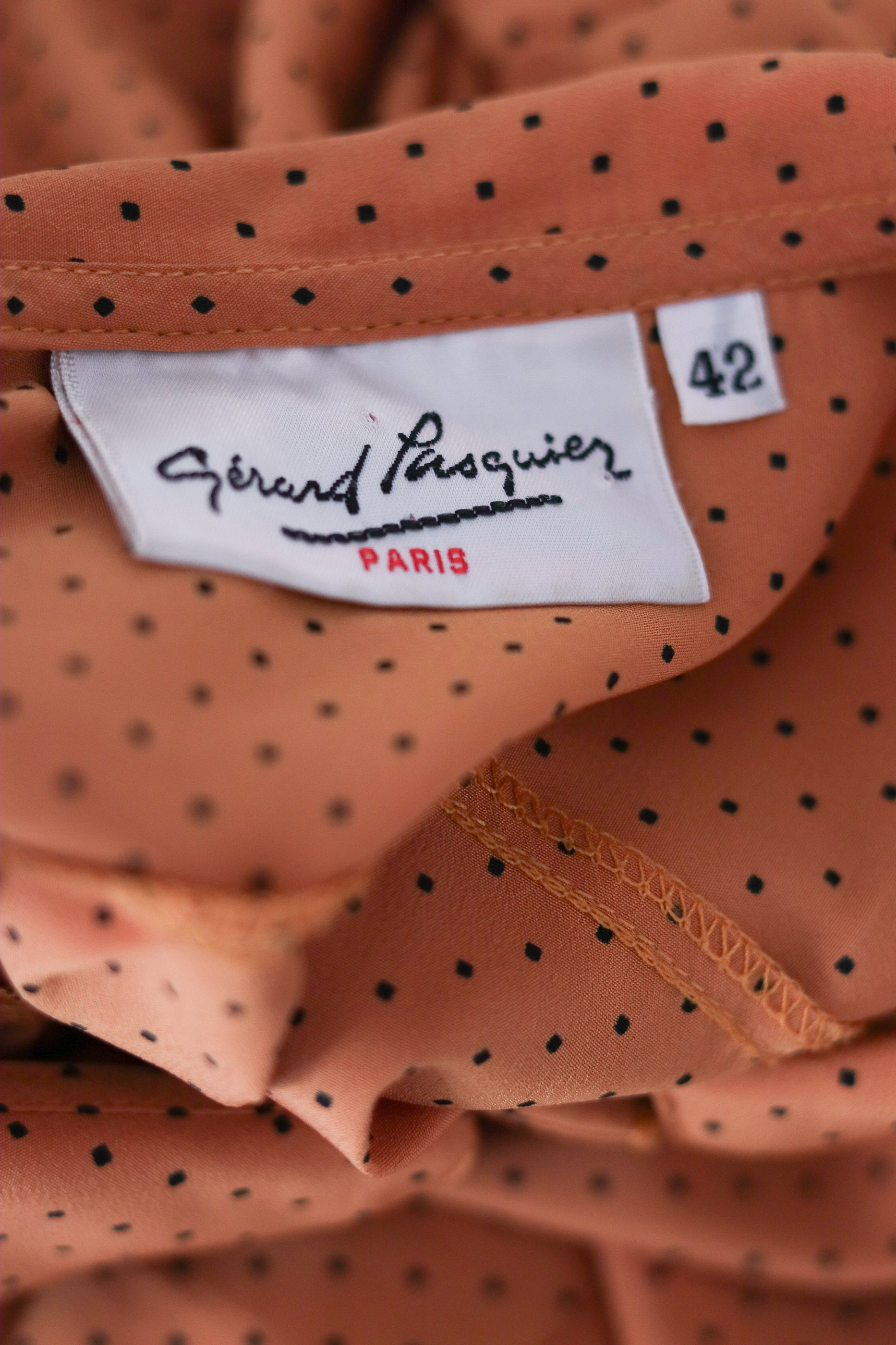 Élégant chemisier vintage signé Gérard Pasquier Paris, belle pièce vintage des années 1980 de fabrication française. Réalisé dans une matière fluide à motif pois .