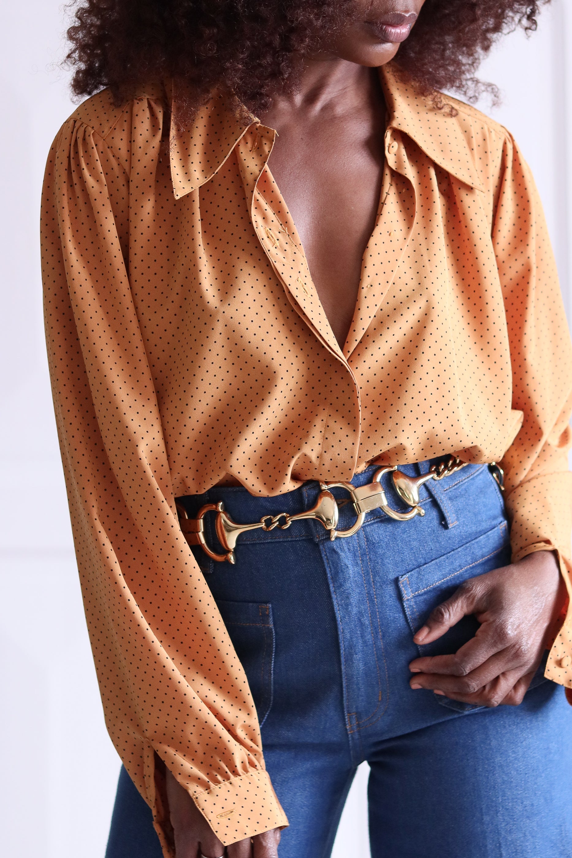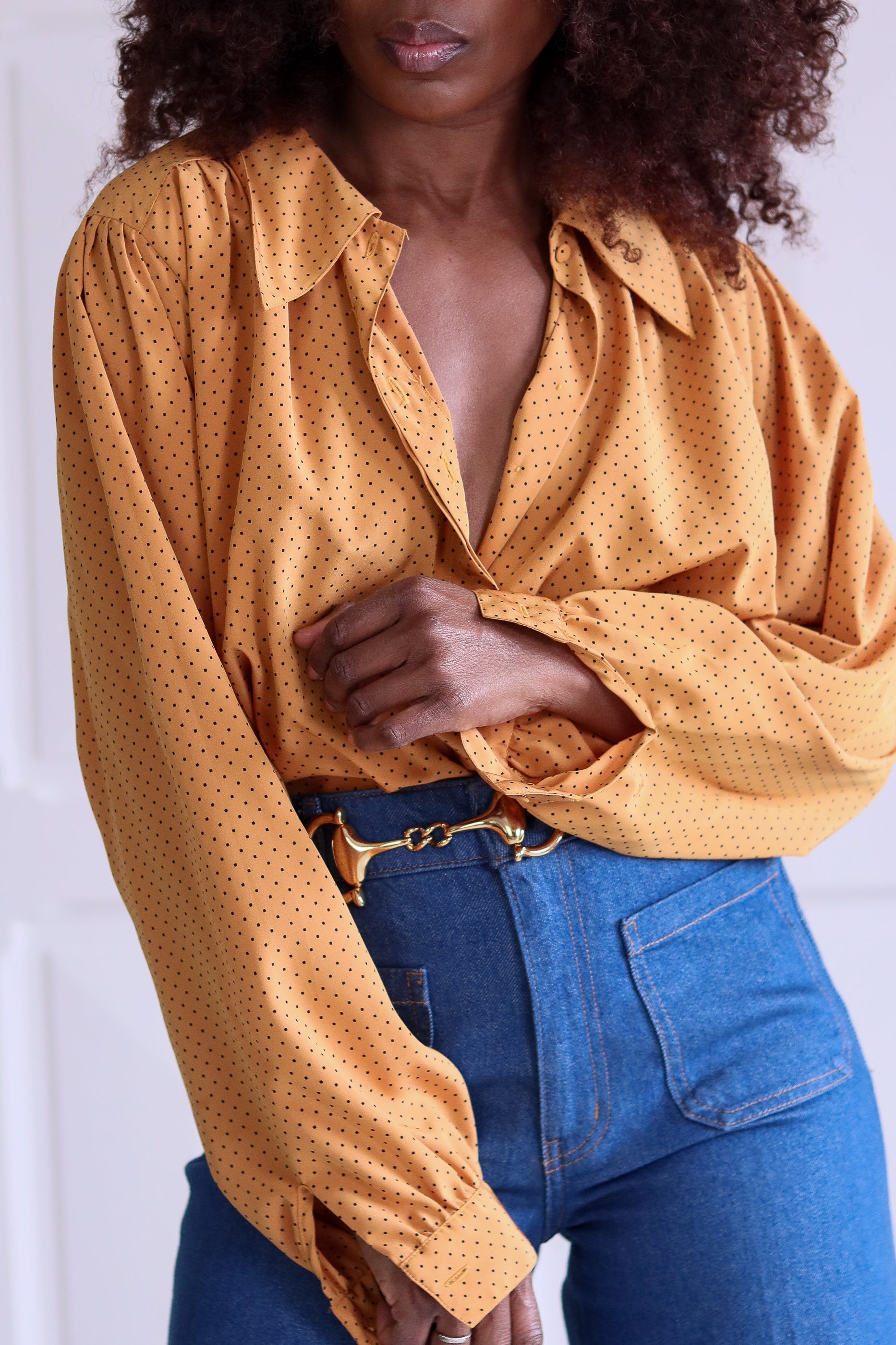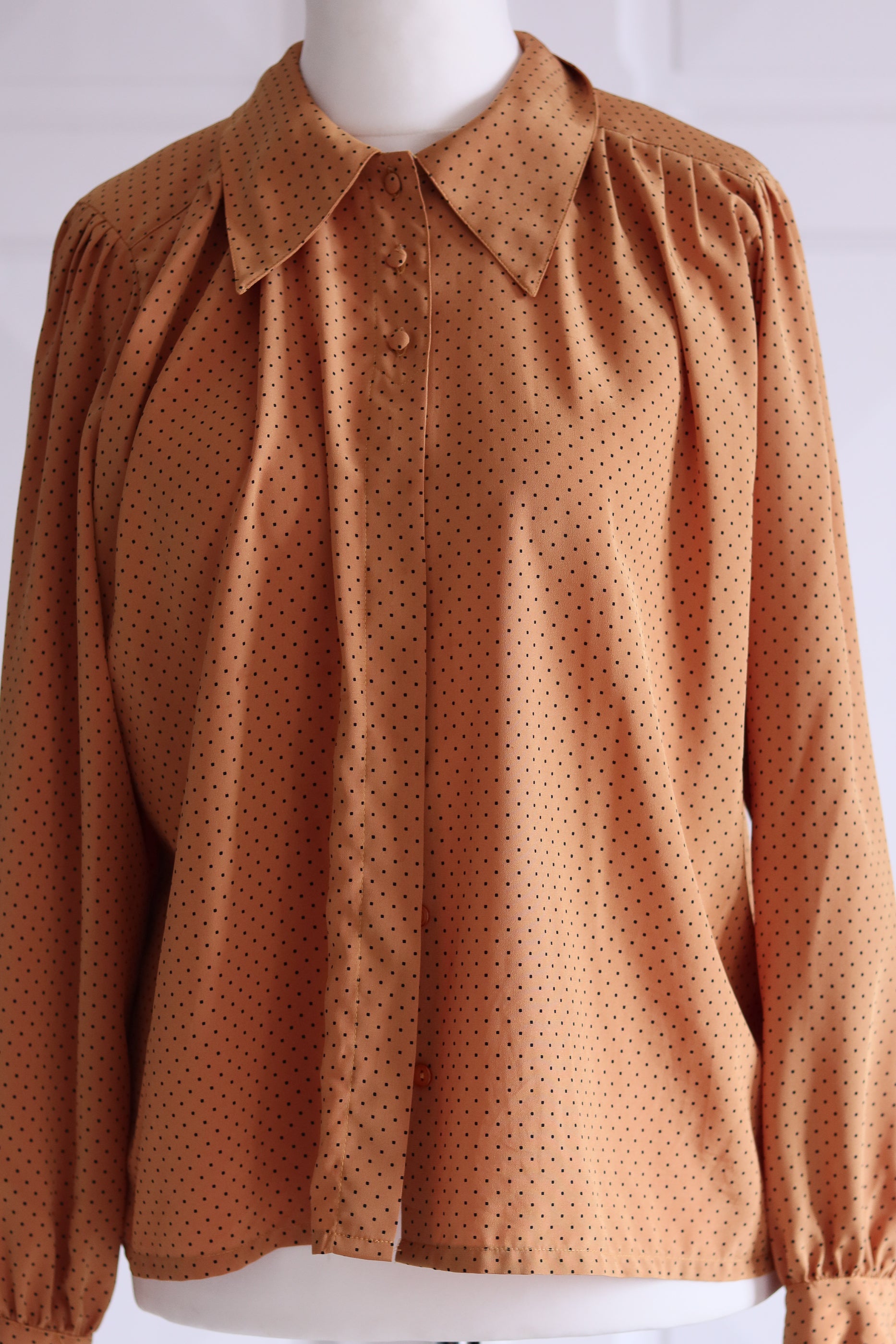 Élégant chemisier vintage signé Gérard Pasquier Paris, belle pièce vintage des années 1980 de fabrication française. Réalisé dans une matière fluide à motif pois .