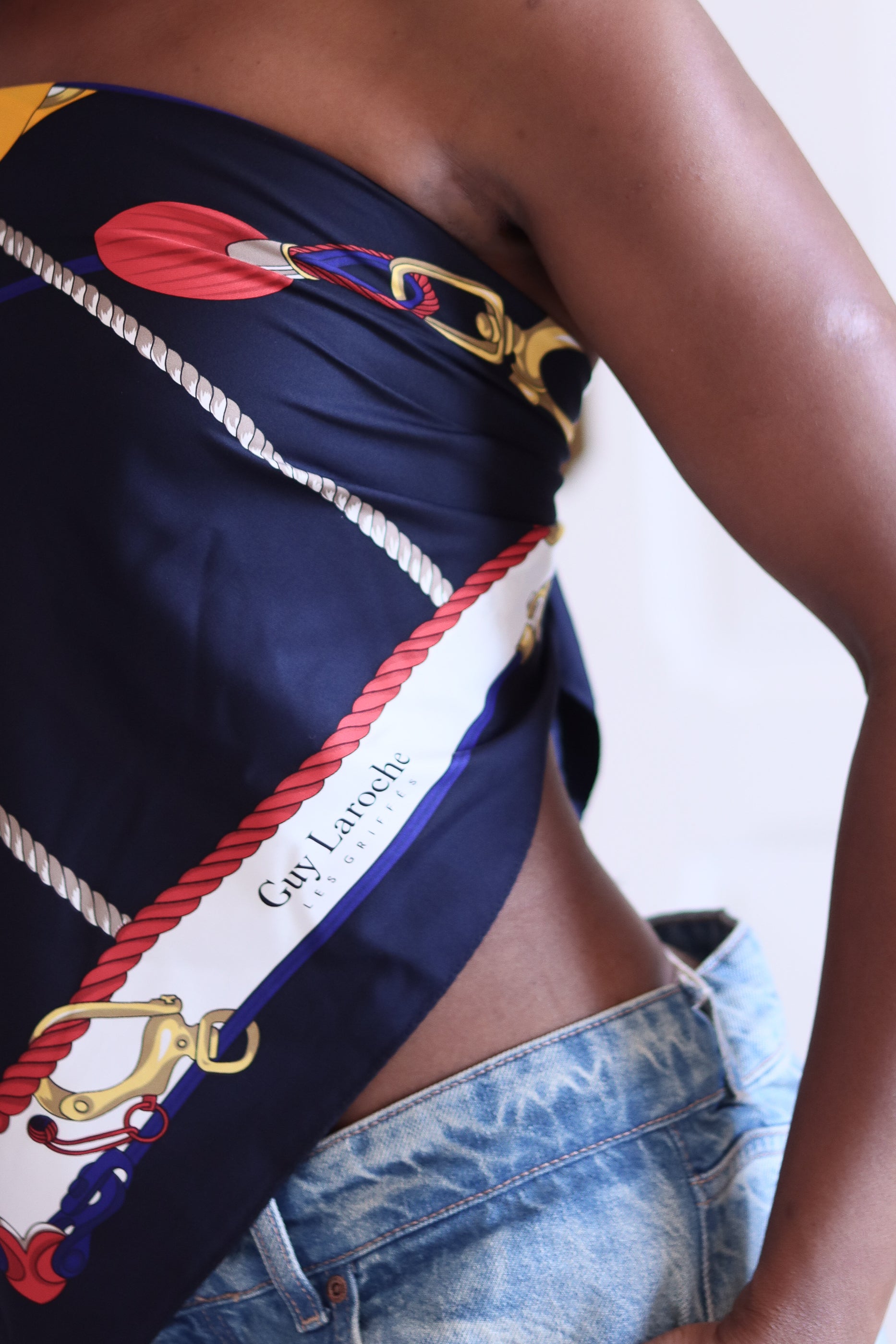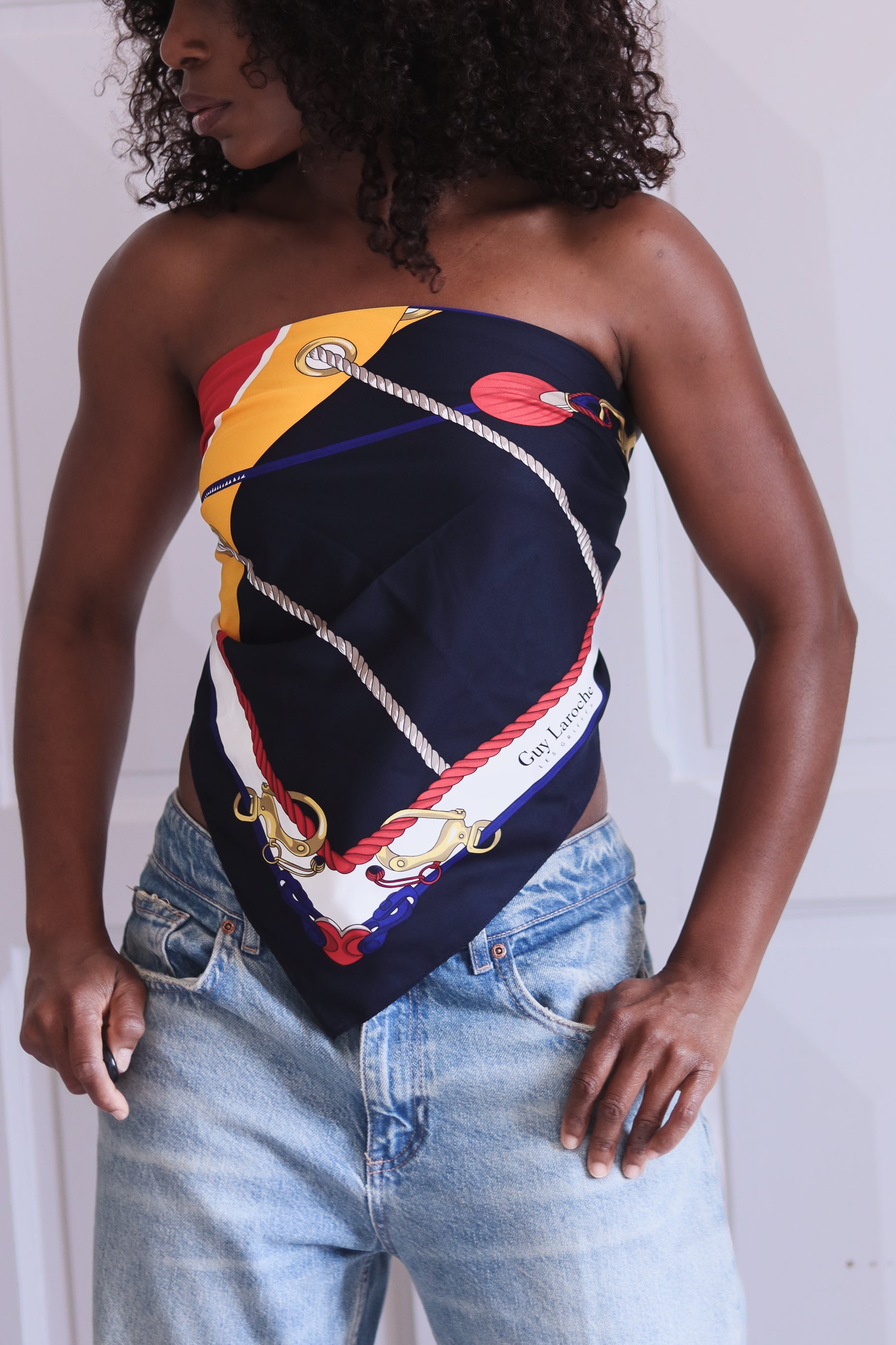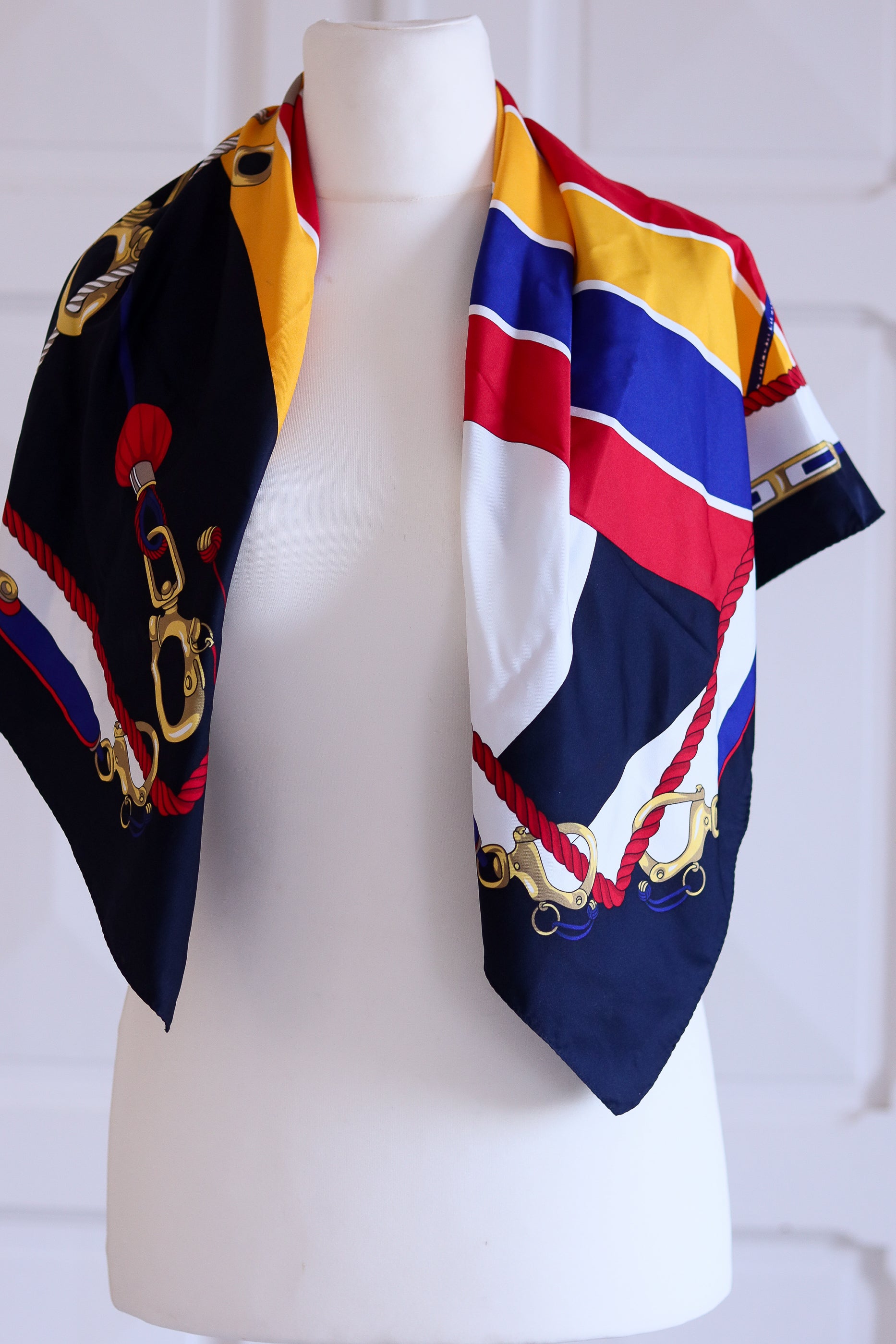 Signé Guy Laroche grand carré vintage datant des années 1980. Tissu doux en polyester à motifs marins