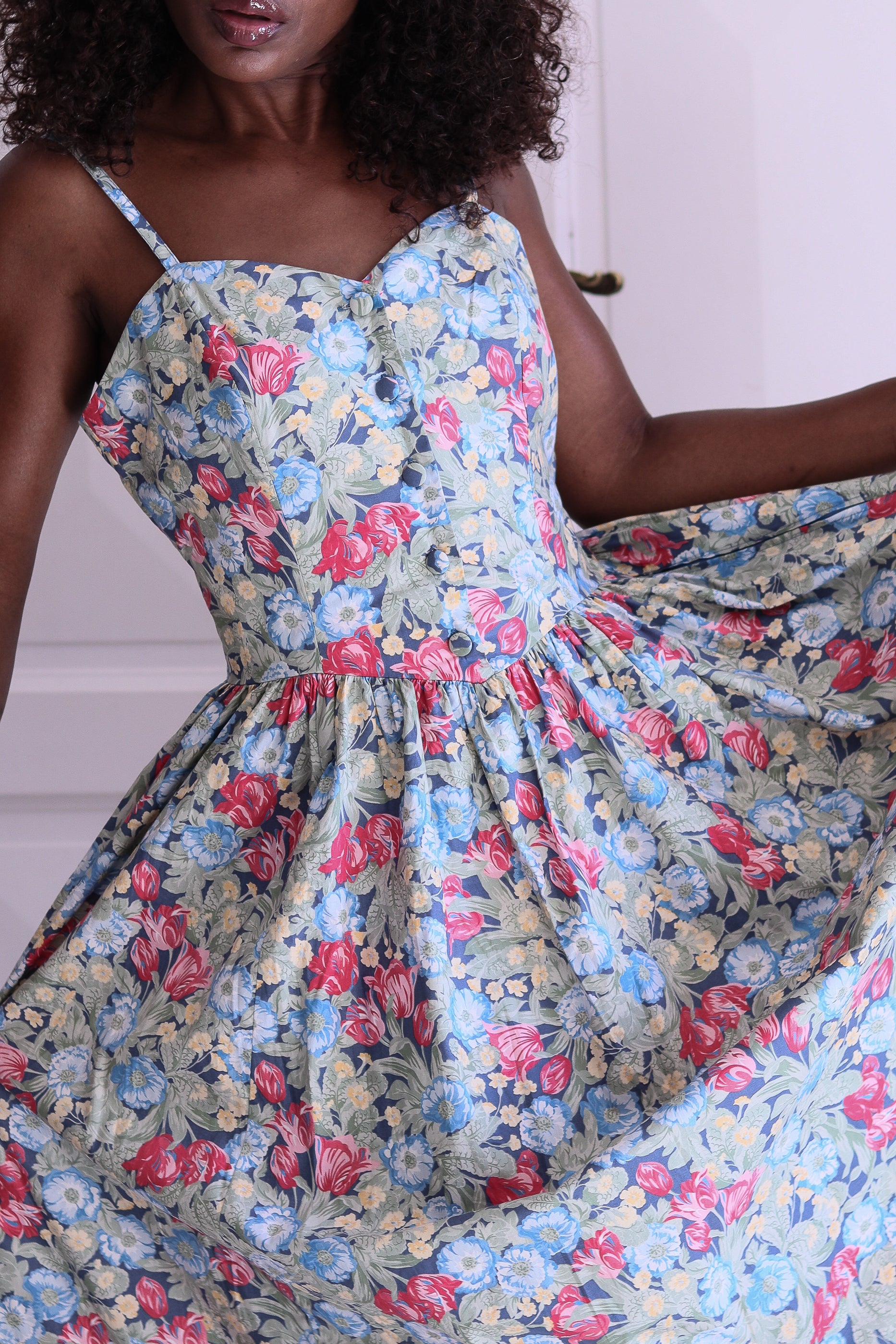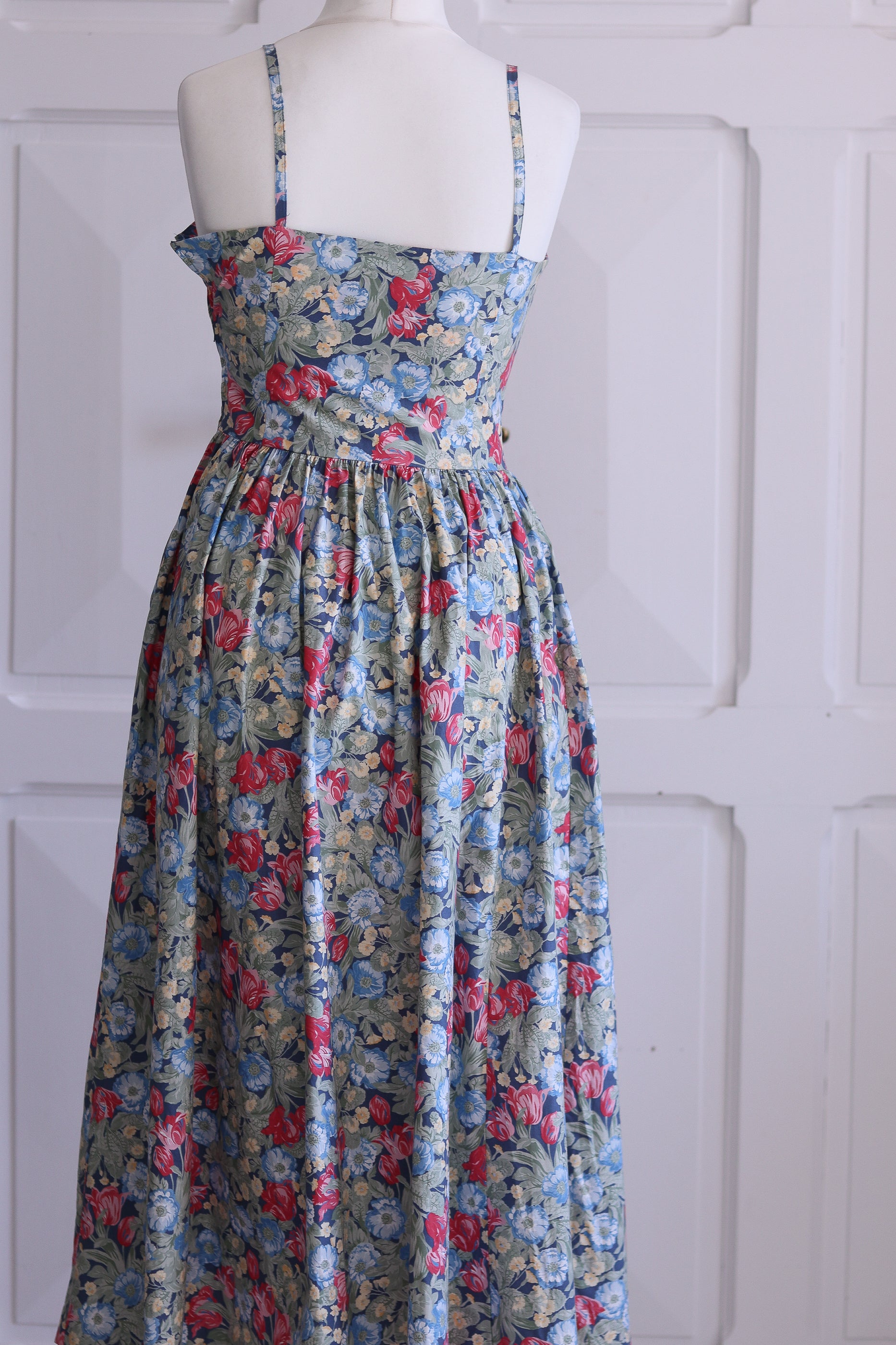Plongez dans l’univers romantique de Laura Ashley avec cette robe des années fin 70. Confectionnée en Grande-Bretagne, elle arbore un imprimé floral.