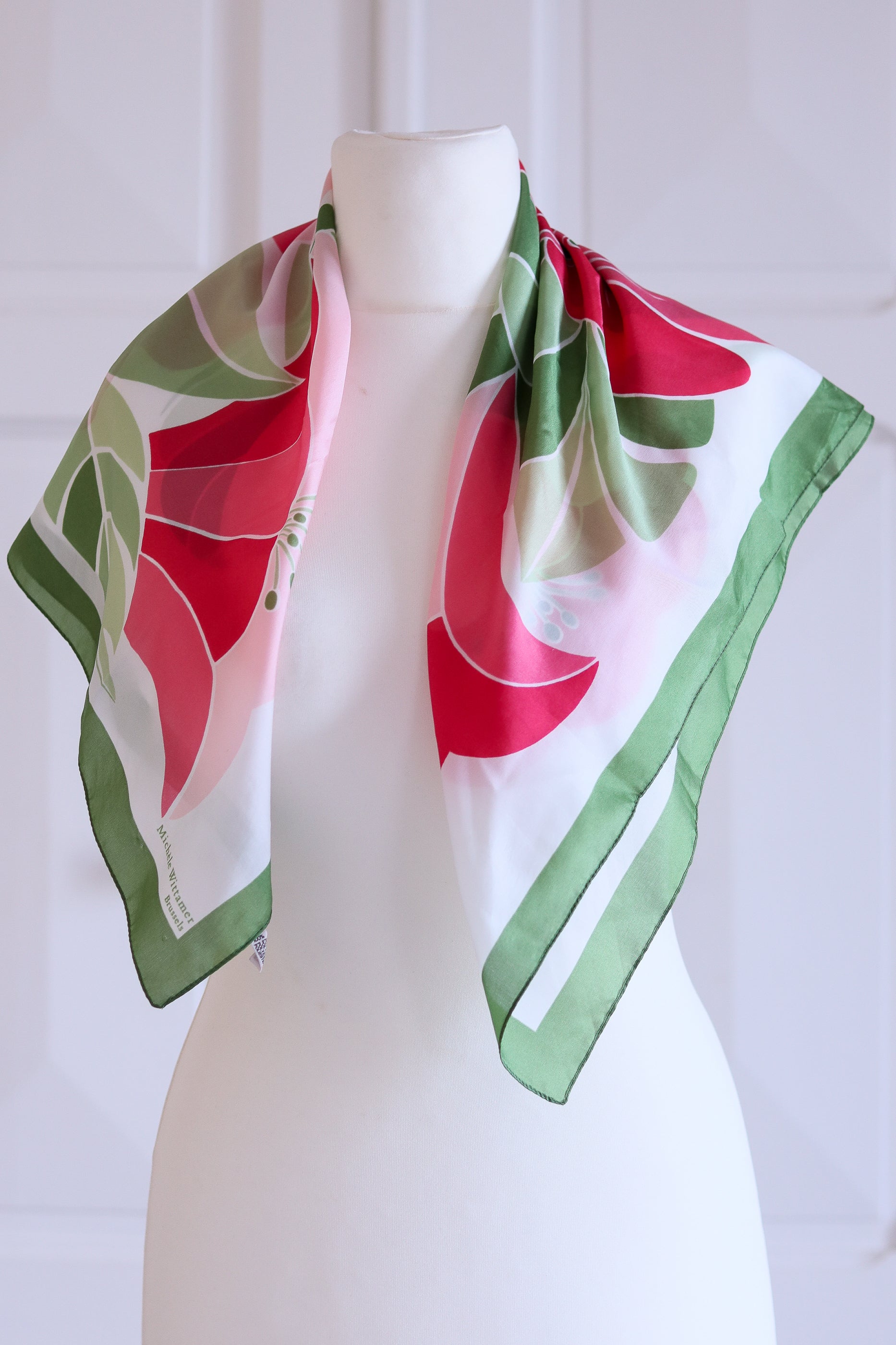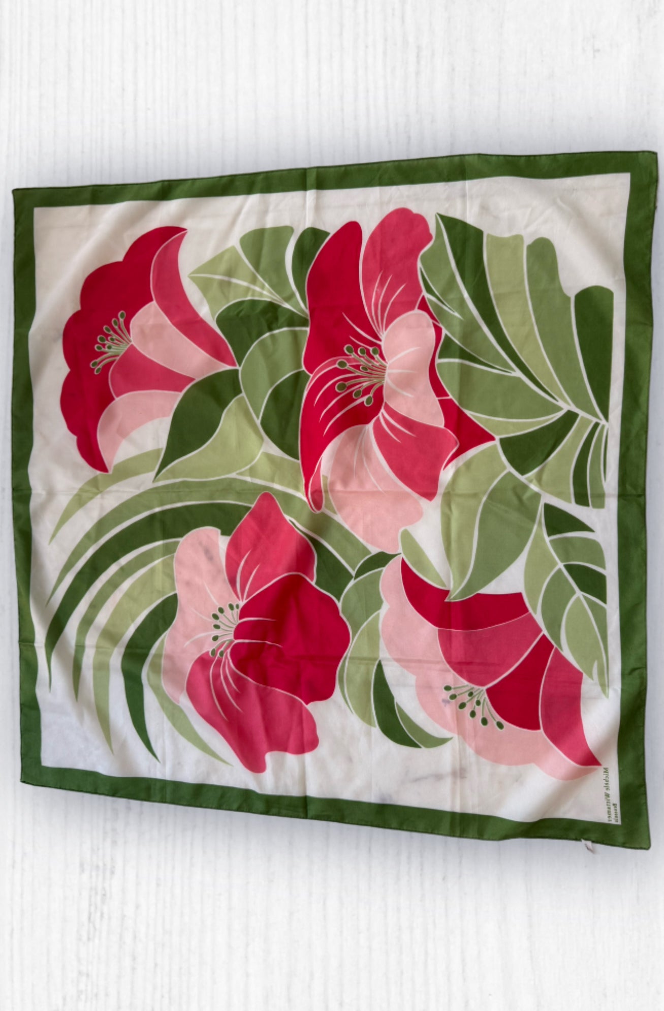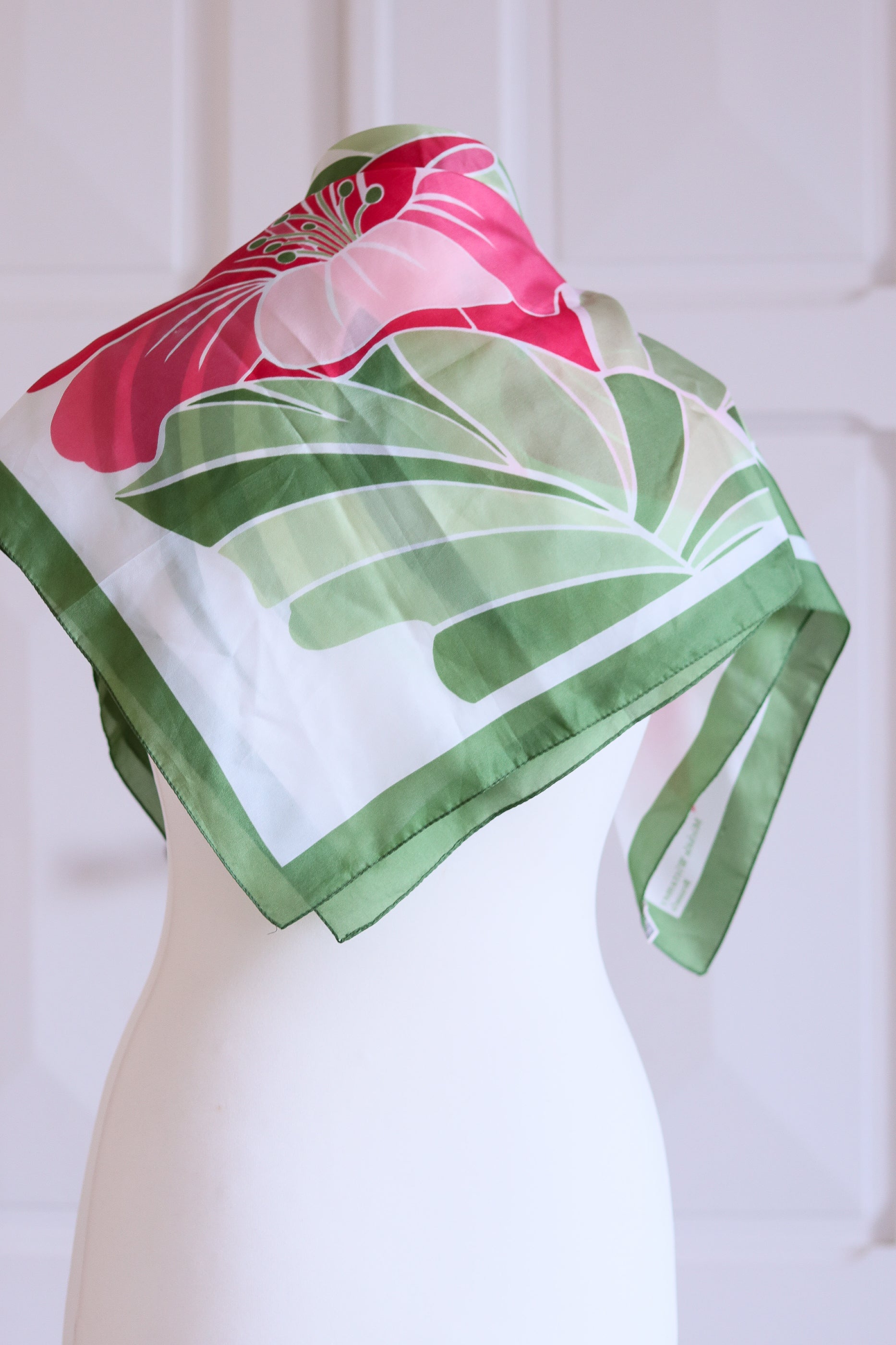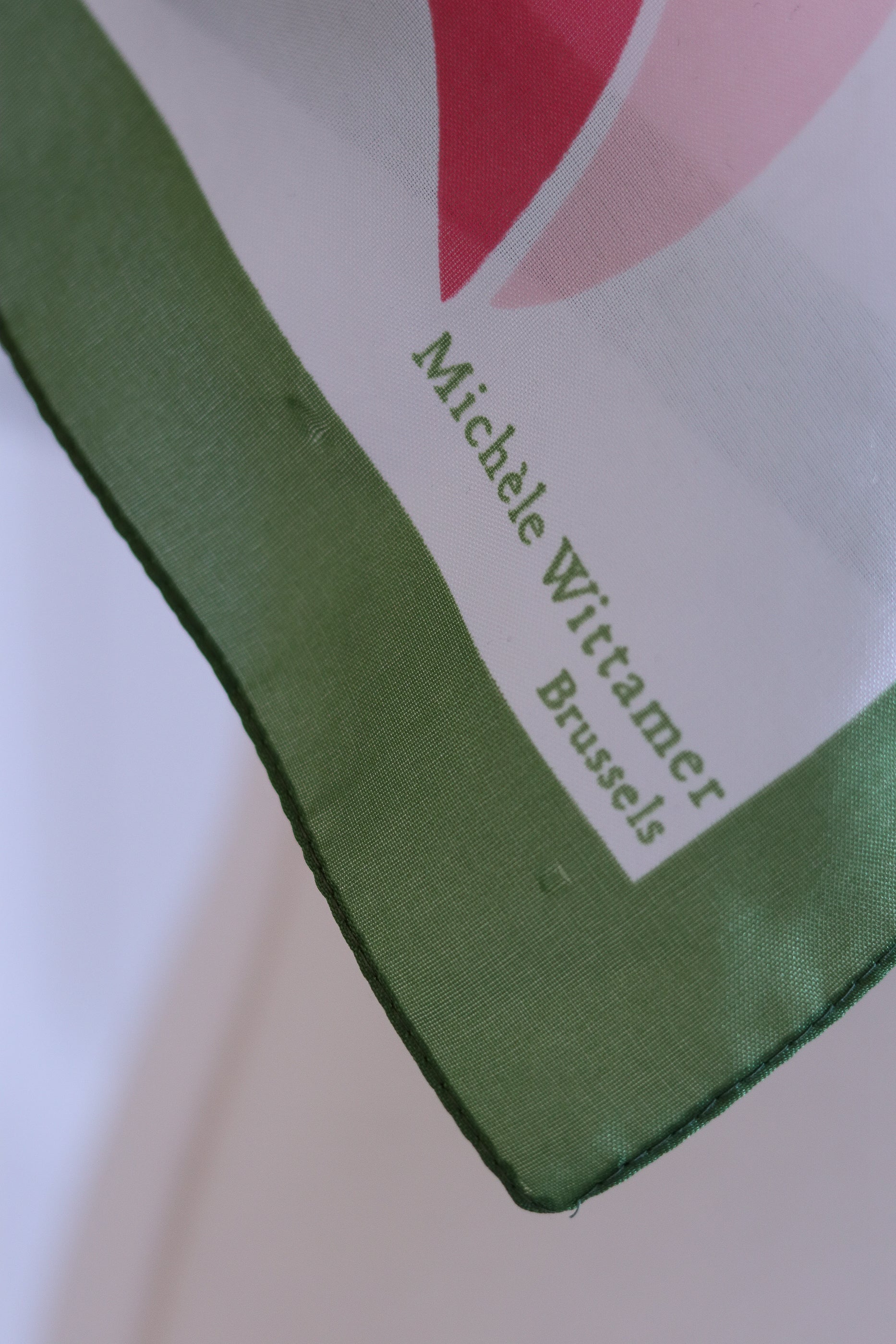 Foulard à motif tropical datant des années 1970 et signé Michèle Wittamer Brussels