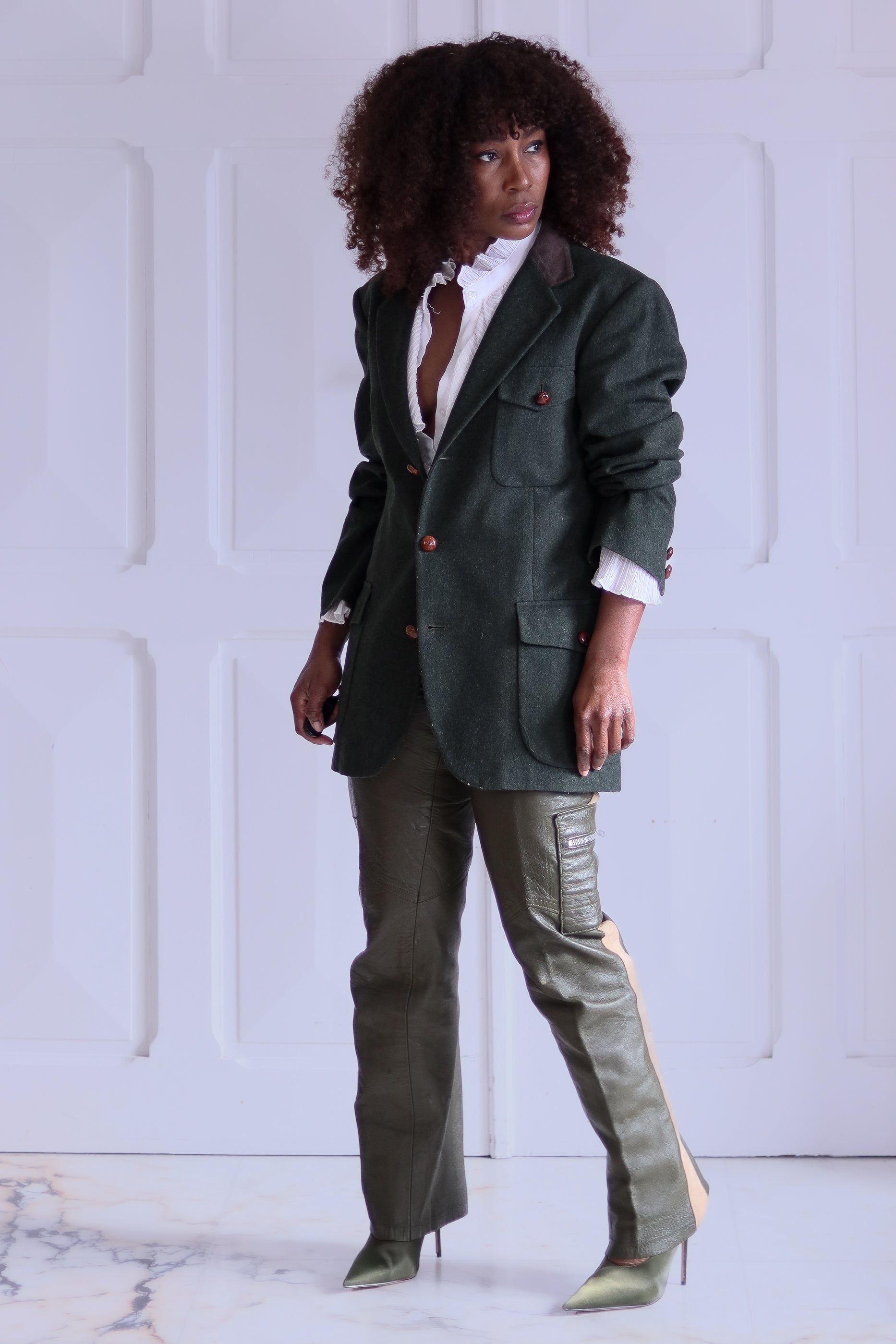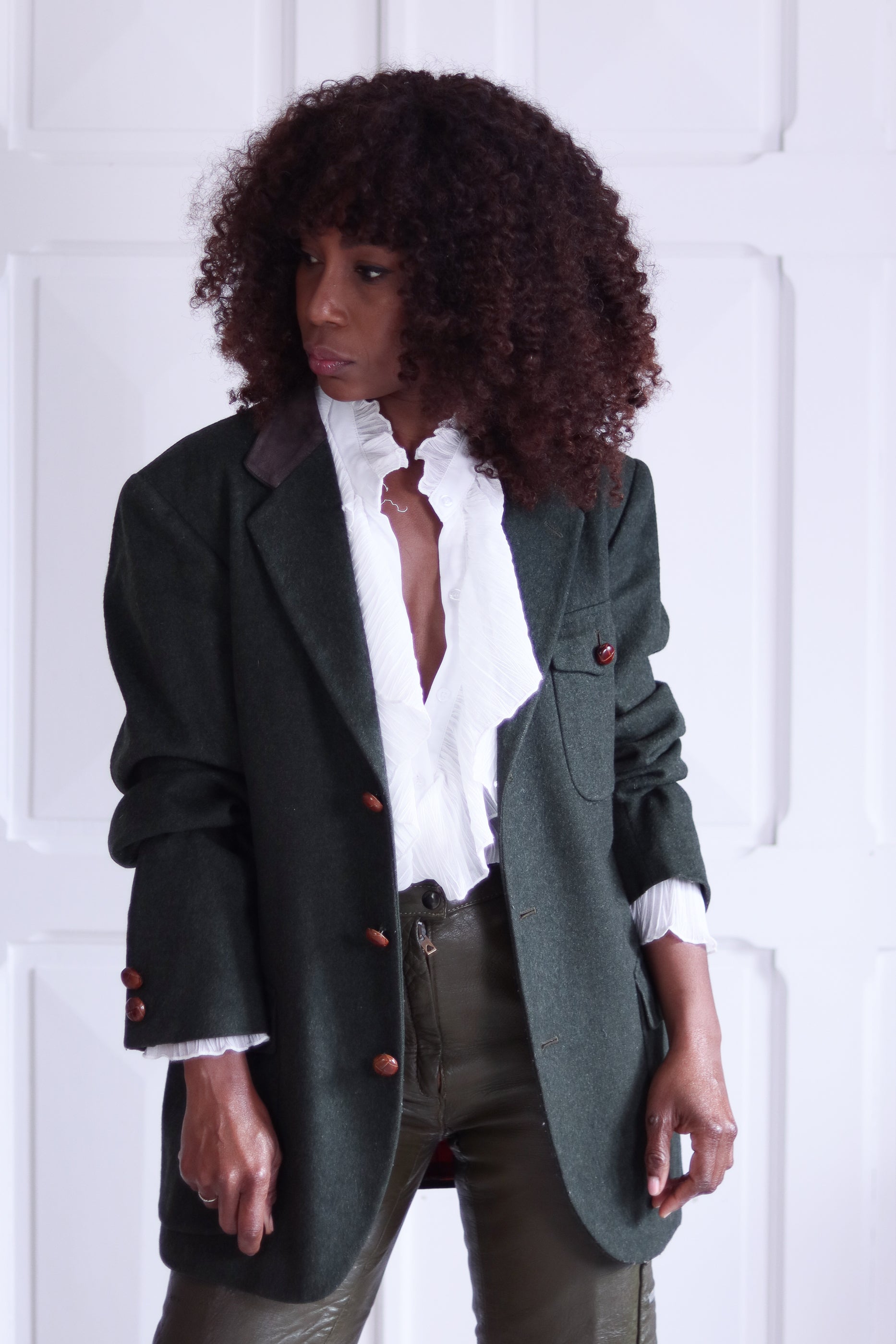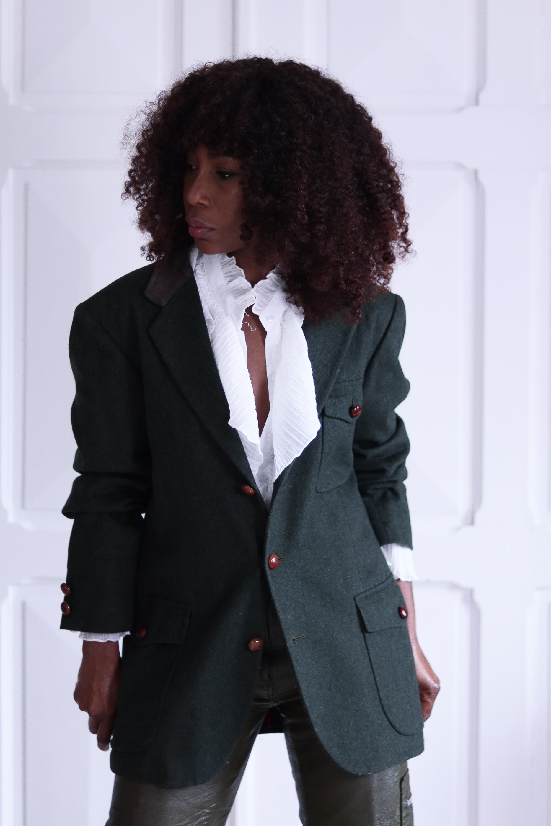 Une veste pensée pour durer, au tombé impeccable, parfaite sur un jean brut, un pantalon en cuir ou une jupe droite pour un look rétro chic inspiré du vestiaire masculin
