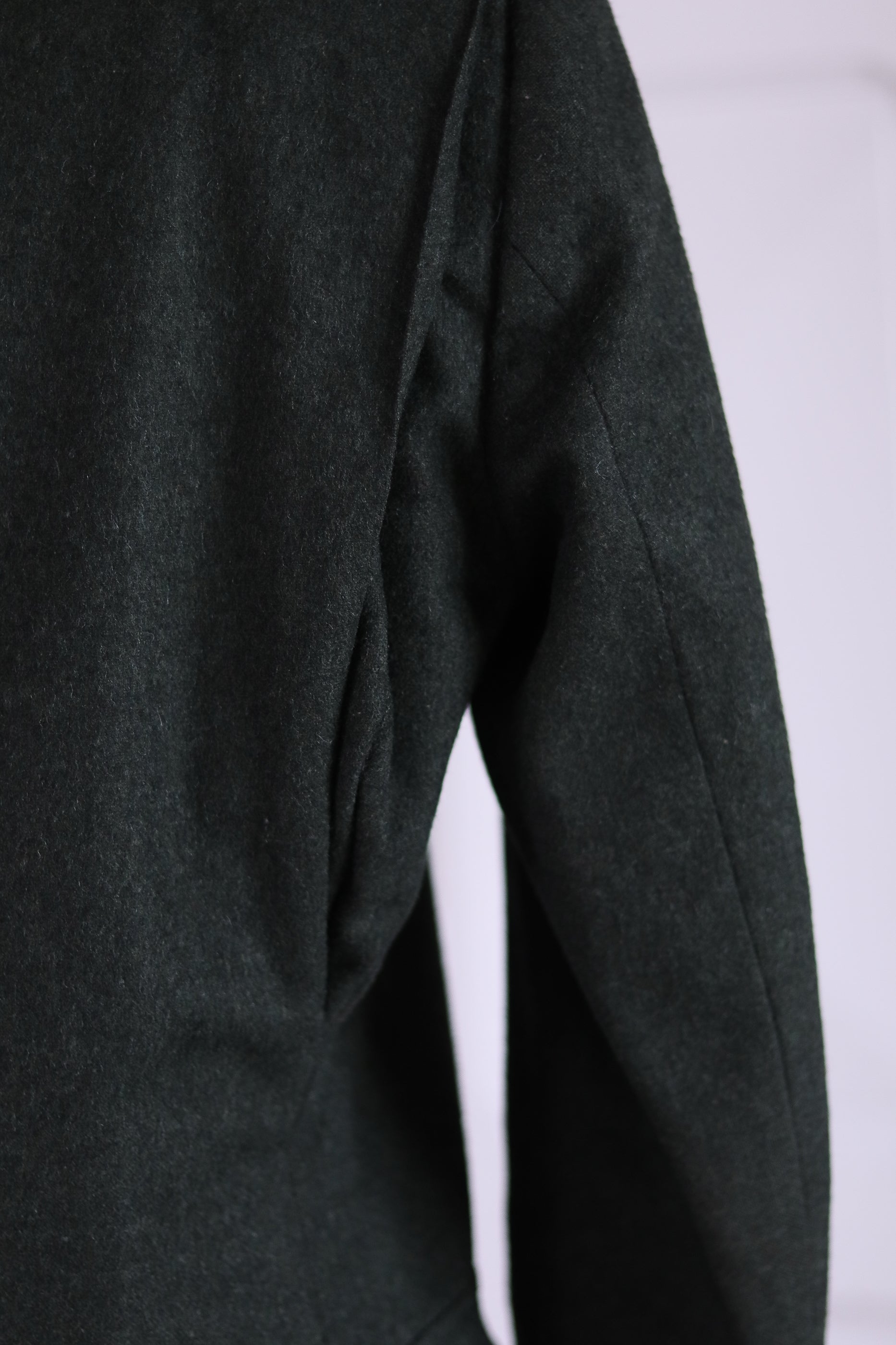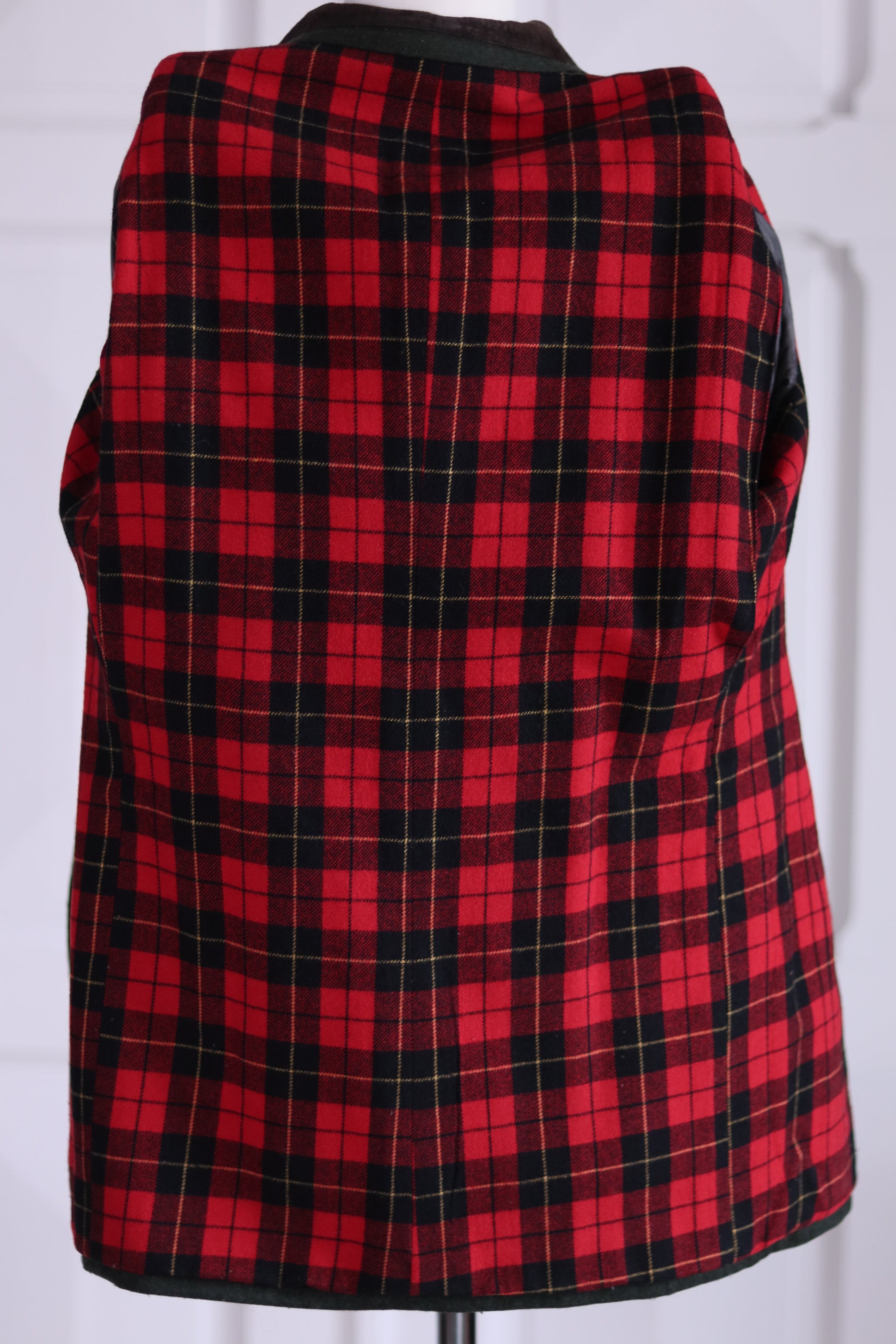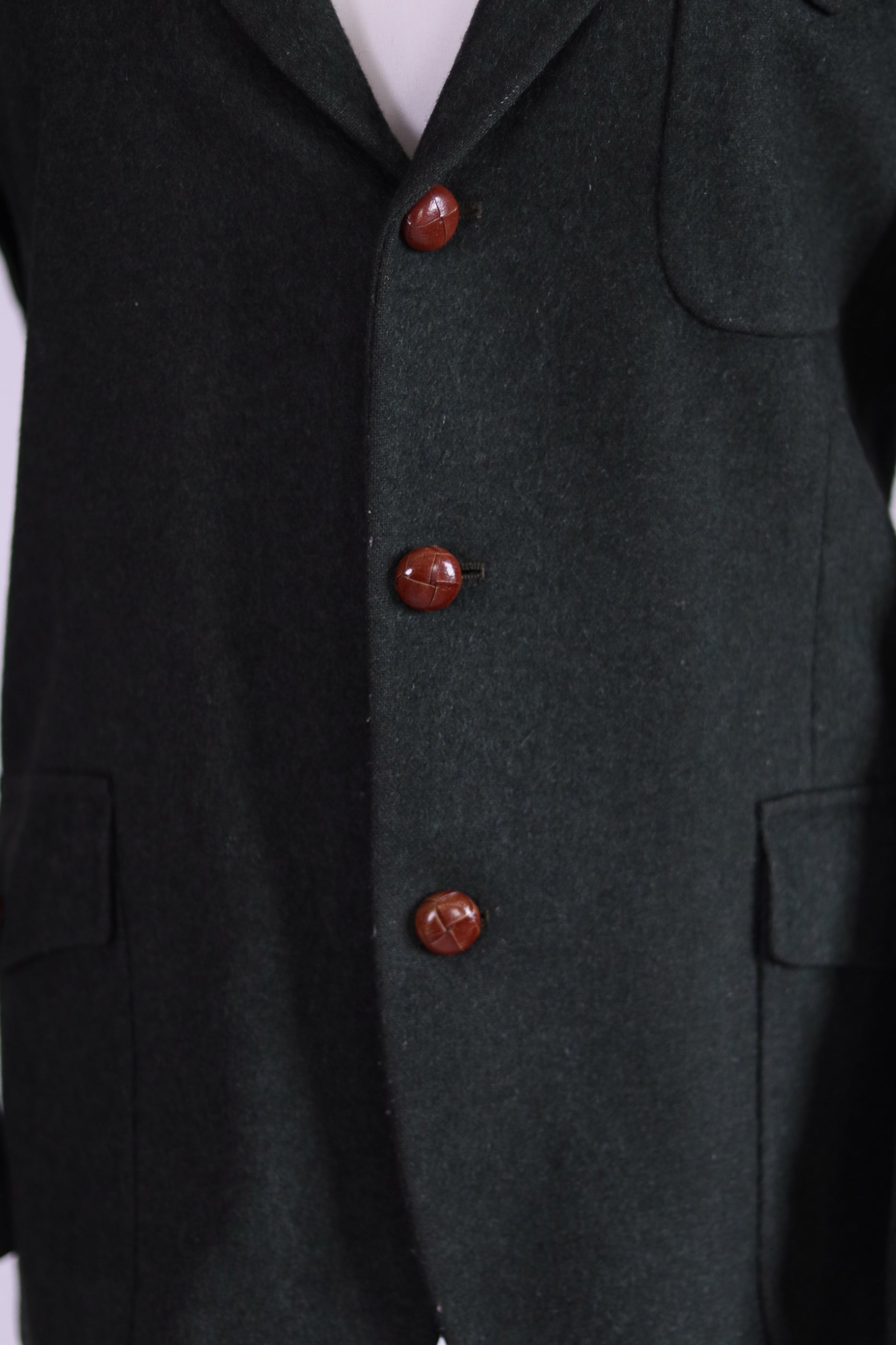 Son tissu en laine verte profonde, ses boutons en corne, et son col contrastant en suédine brune traduisent un style à la fois rustique et élégant. La doublure intérieure en tartan rouge vif apporte une touche graphique et chaleureuse, typique des pièces d’extérieur italiennes de qualité.
