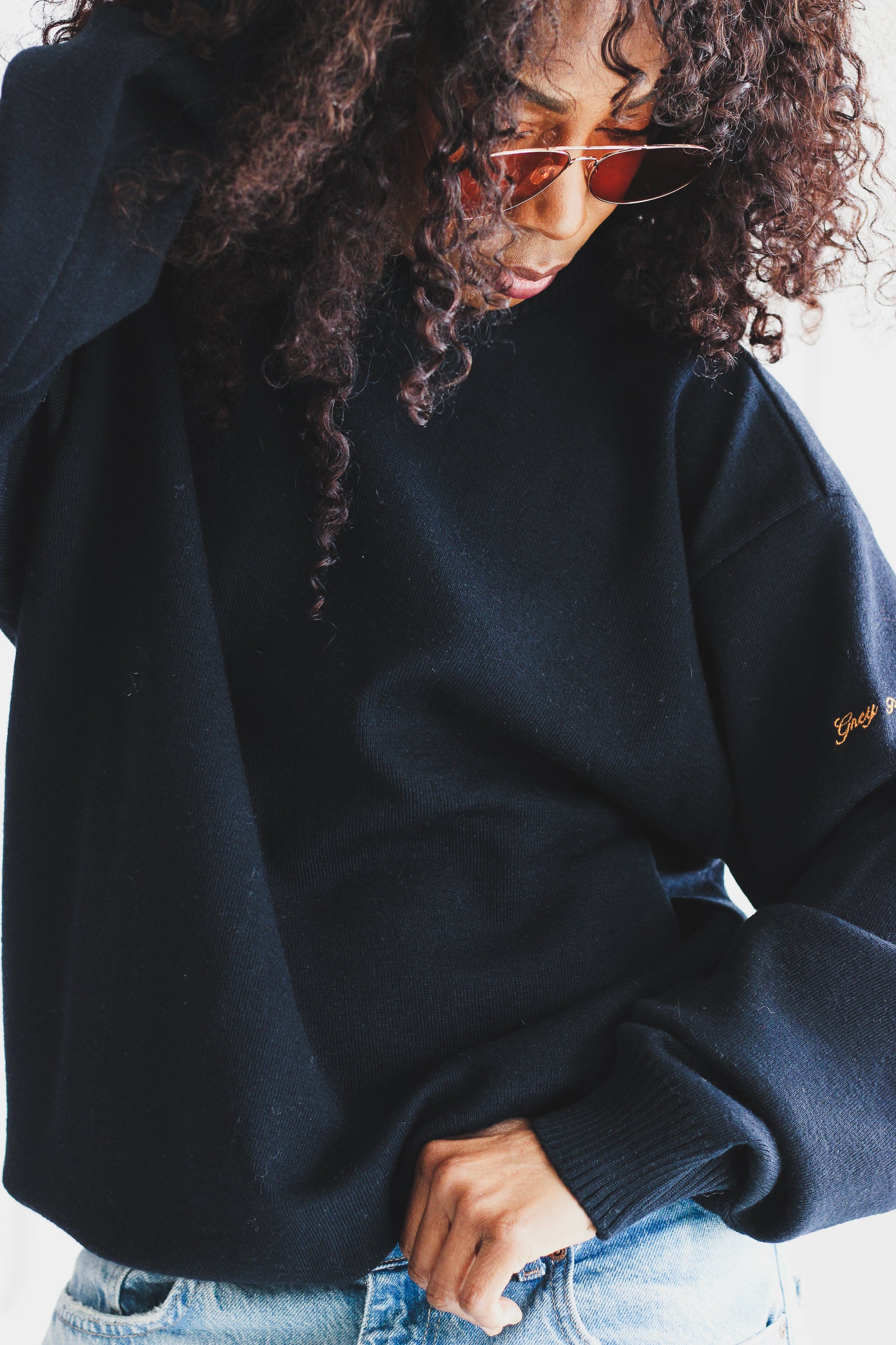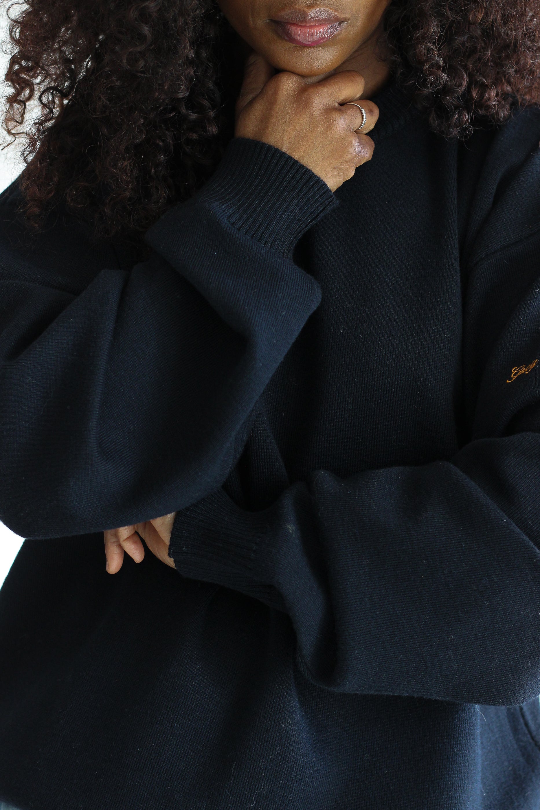 Pull noir au style minimaliste et intemporel, facile à intégrer dans tous les dressings. Création Grey Pearl et de fabrication française. Maille composé de 50 % de laine et de 50 % d'acrylique