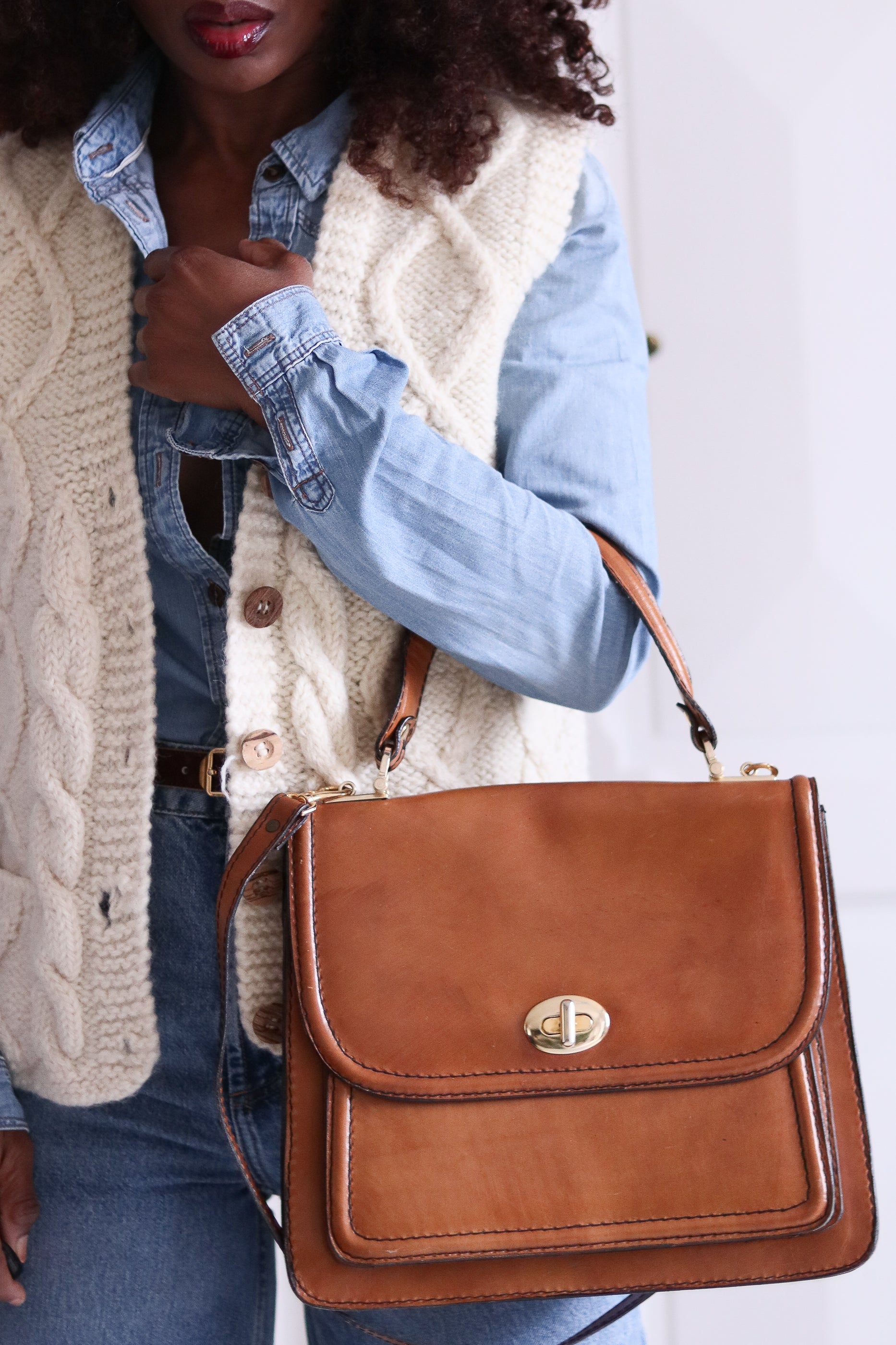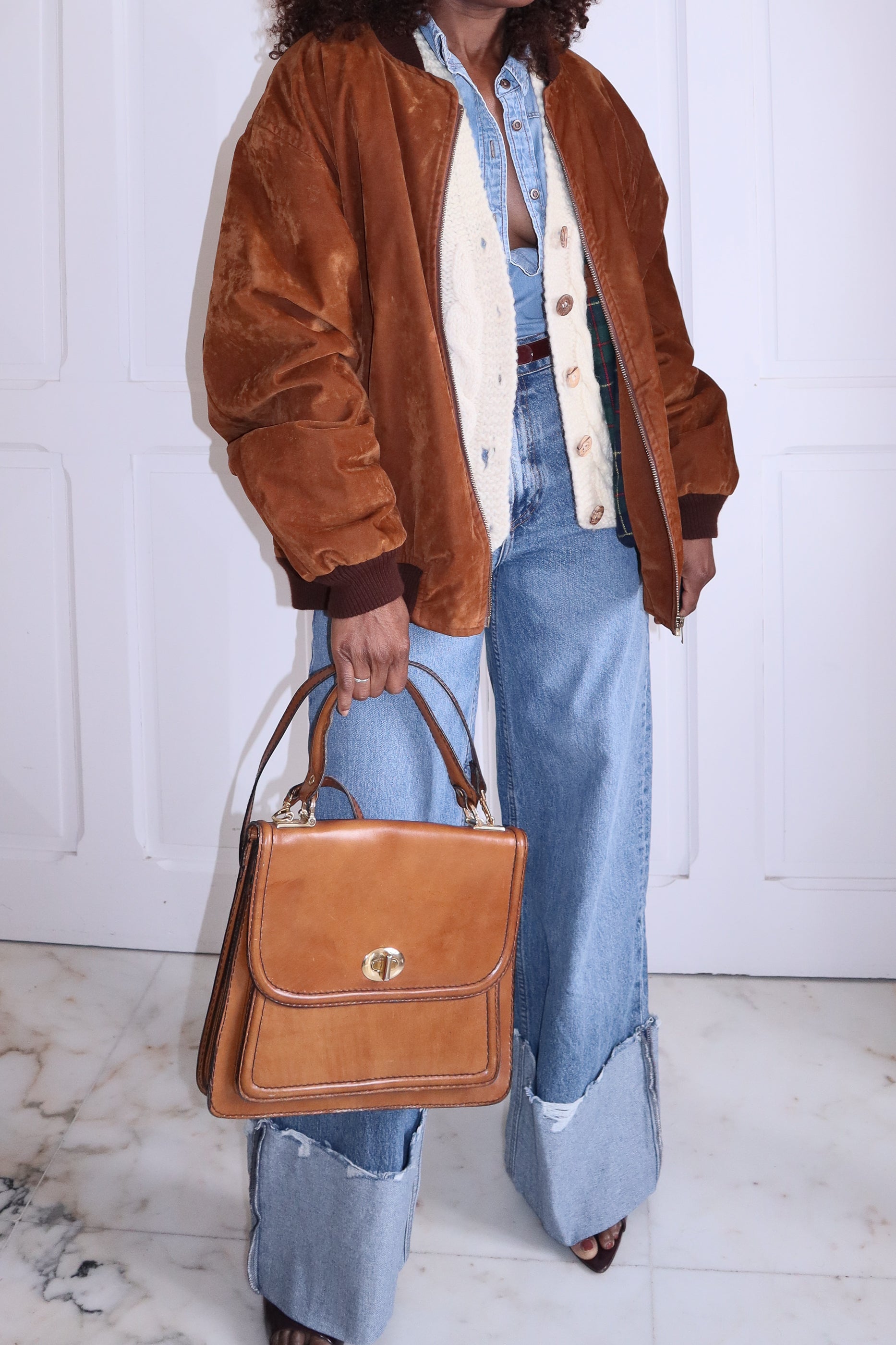 Un modèle vintage plein d’élégance, confectionné dans un cuir lisse couleur camel, avec une belle patine naturelle. Format rigide et son fermoir doré à tourniquet , belle pièce vintage des années 1970
