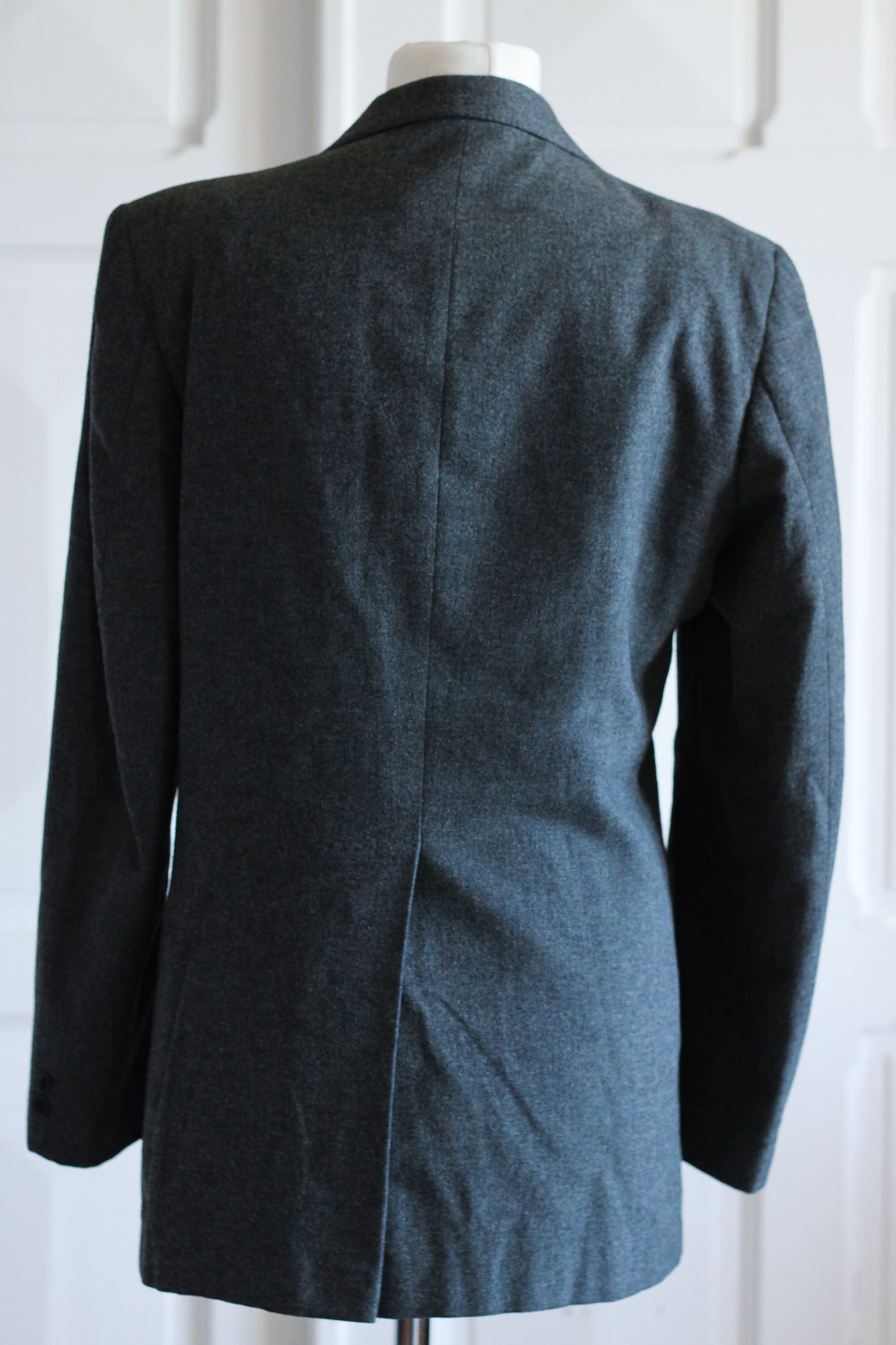Une coupe tailleur intemporelle, légèrement structurée, avec une allure androgyne très actuelle. La veste présente un revers classique, une fermeture à deux boutons.